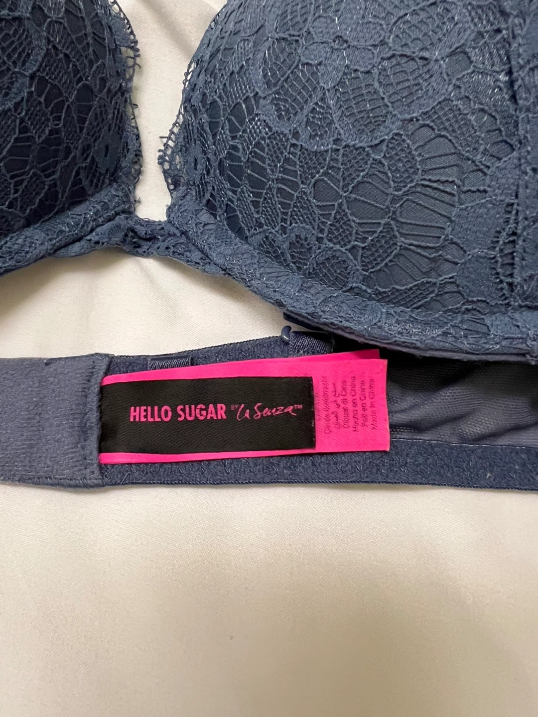 2 Comfortable and stylish black and blue lace push-up bras by La Senza Hello Sugar collection. Both bras has adjustable straps and a classic hook-and-eye closure for a customize fit. Size 34A.