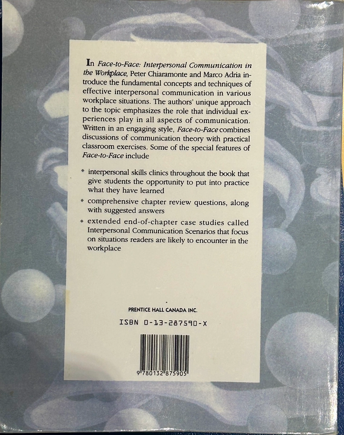 Two books on interpersonal communication. One textbook, *Face-to-Face*, explores workplace communication. The other is a study guide for University's Communications 243 course, focusing on interpersonal communications in management. Both offer valuable insights into communication skills.