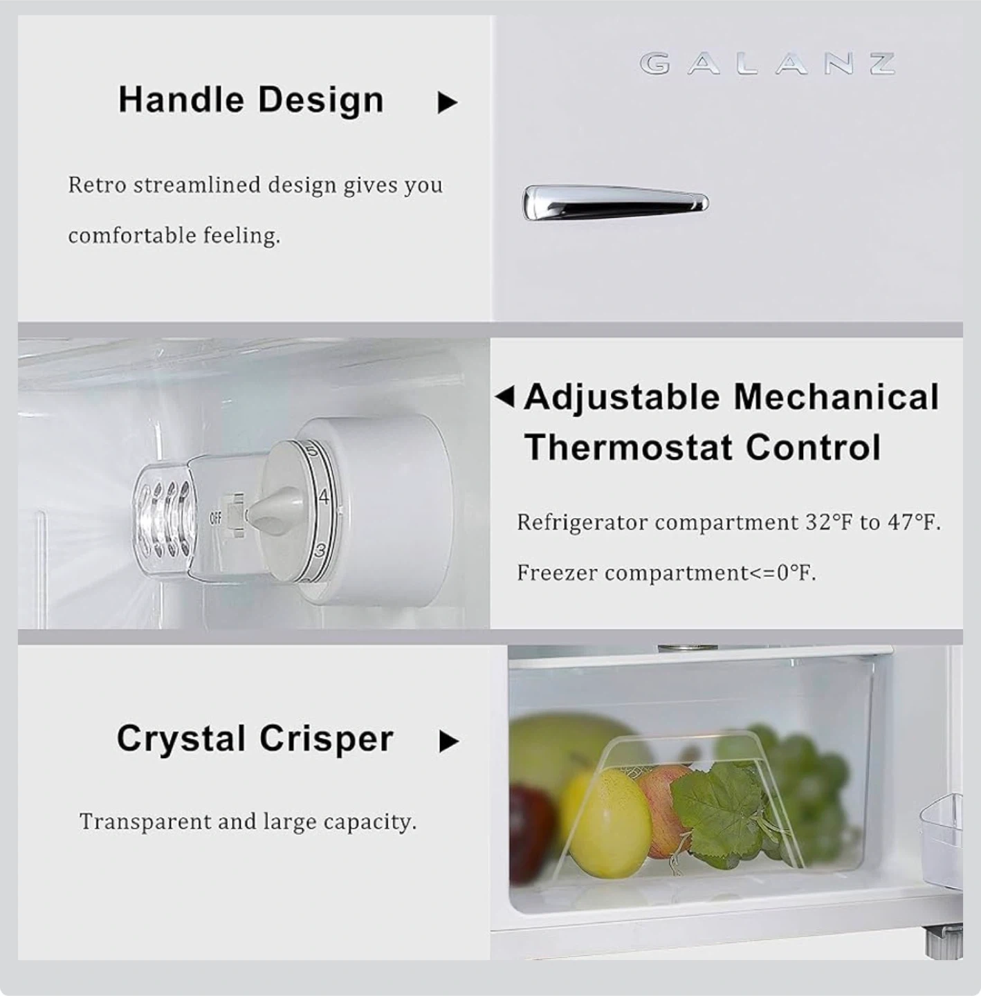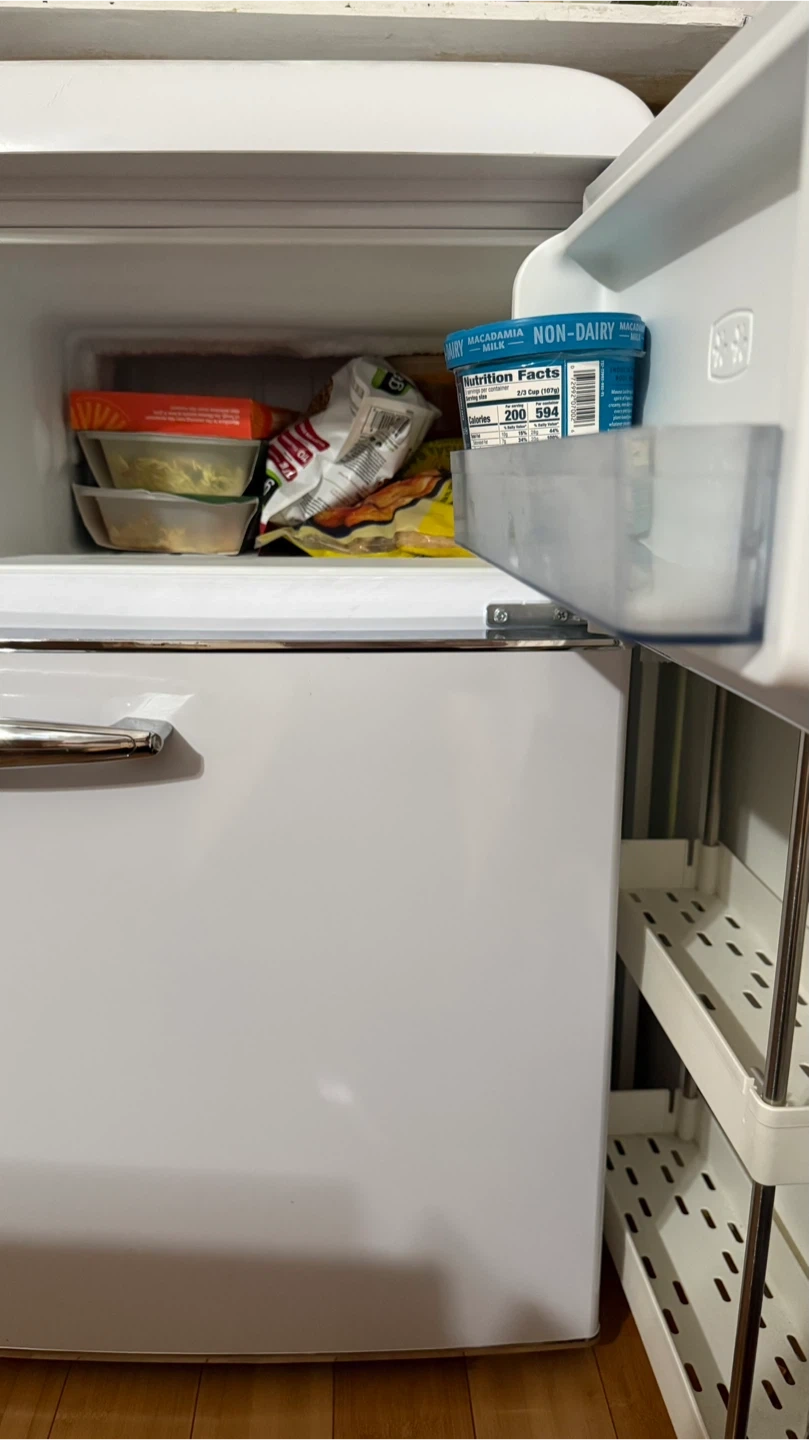 Galanz 3.1 Cu Ft Retro Compact Refrigerator (White) Super cute retro style! Used less than a year. ✔️ Dual doors (separate freezer) ✔️ Adjustable thermostat ✔️ Compact but spacious Minor scratches but in very good condition. Moving out tomorrow — priced to sell! Pickup only. Message me if interested!