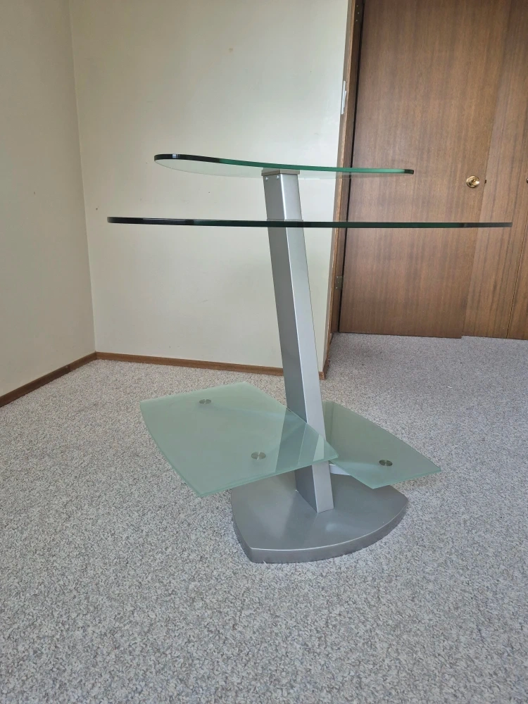 pick up only (bonnie doon neighborhood) $50 OBO tempered glass computer desk perfect for corners or smaller spaces. high quality smooth glass. VERY HEAVY and awkward to move MUST bring a friend to help move it, i can help load it but you will need assistance unloading! need gone by march 31st!!!