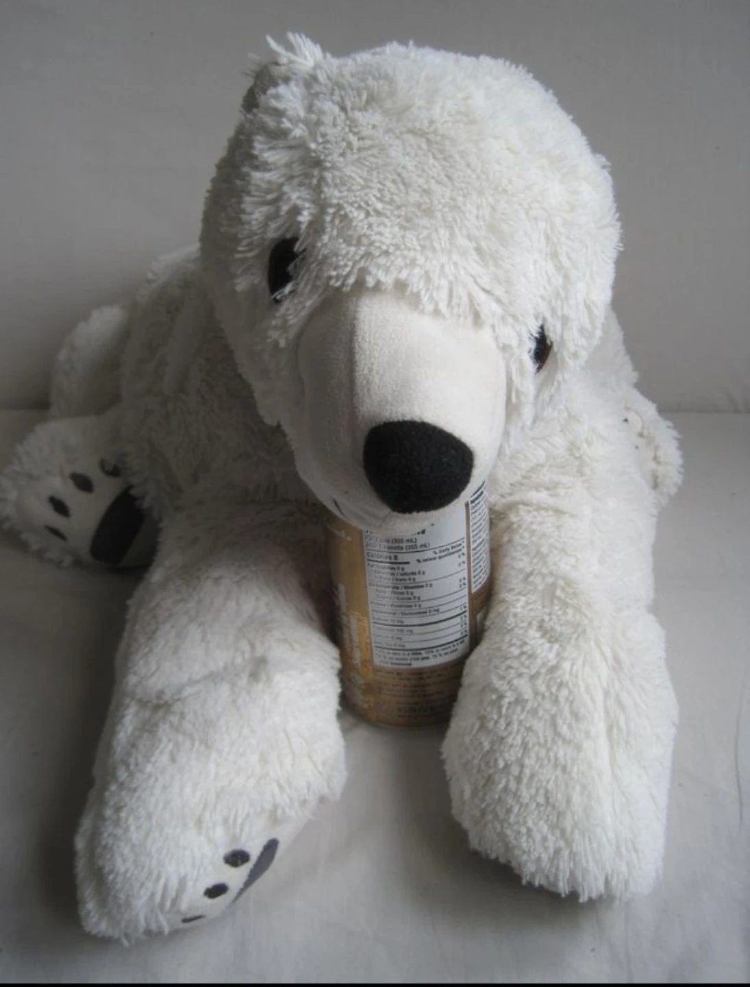 Giant Plush Polar Bear available. Pop can for scale. Firm price.