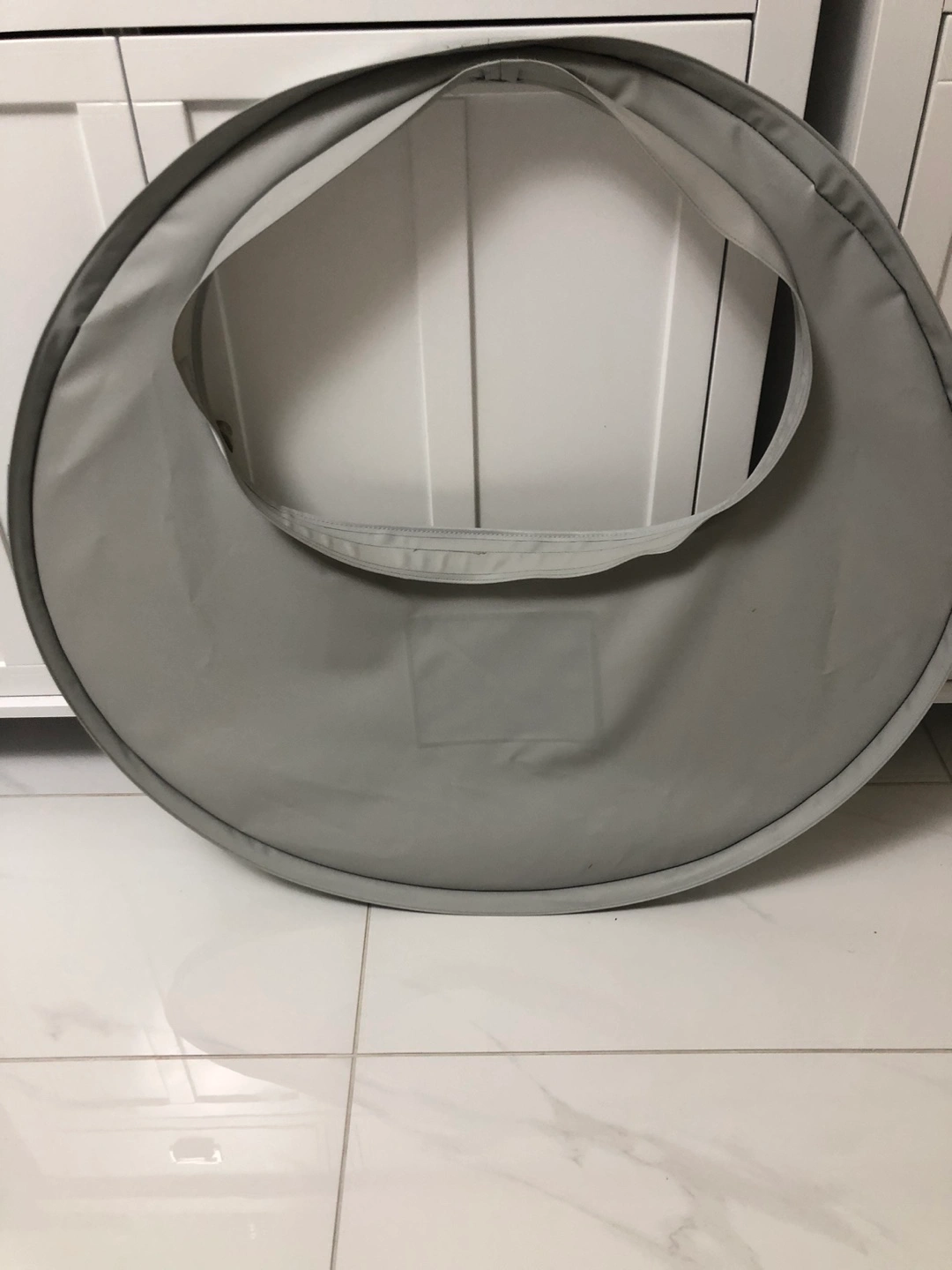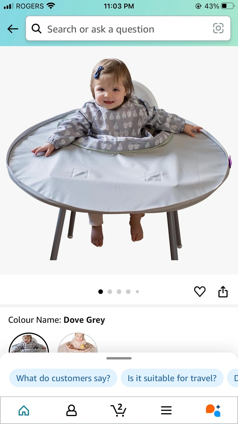 Portable, easy-to-clean baby feeding suction tray for highchair. Idea for baby led weaning. Suctions to highchair to avoid food being thrown on the ground. Grey colour. Great for travel or home use. Attaches easily to high chair.