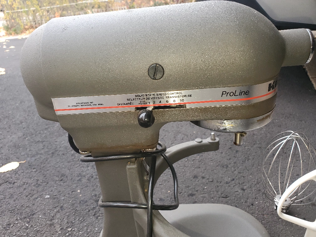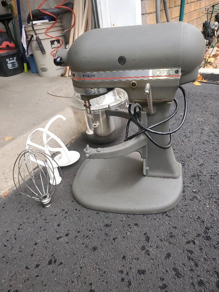 KitchenAid stand mixer with bowl, splash guard, dough hook. Solid state speed control, 10 speeds.NOT TURNS STOP WORKING DOESN'T SMELL BURNED good for handyman can fixed