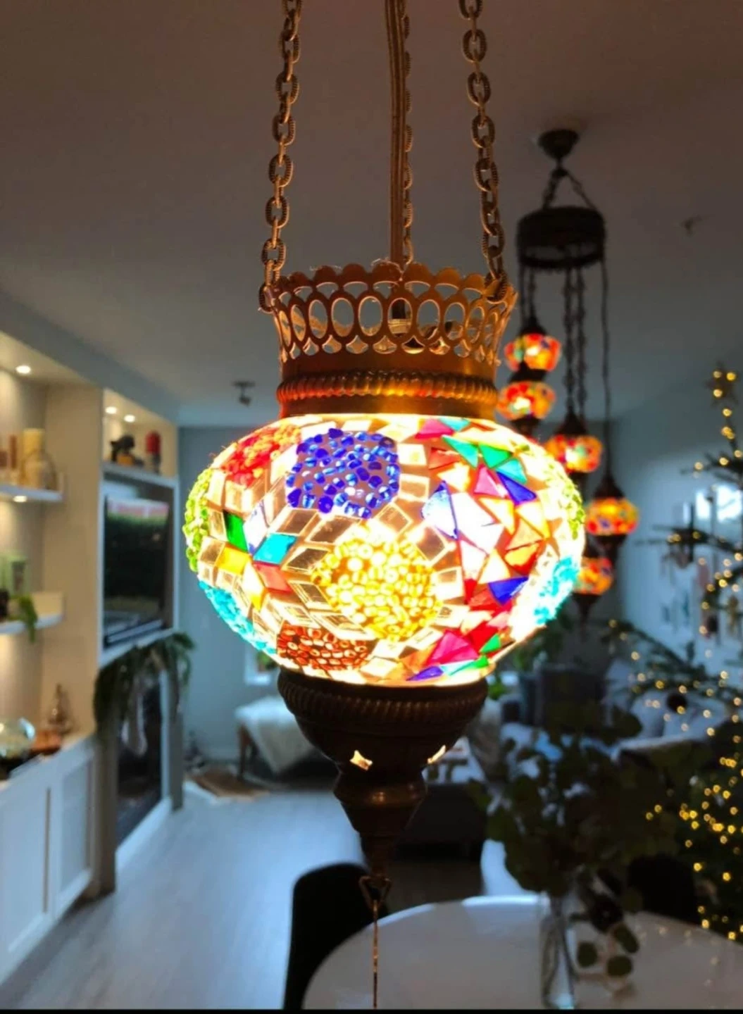 Selling twp beautiful mosaic Turkish hanging lamps! It adds a lovely colourful glow to any room. This lamps are in great condition and ready to brighten up your space.