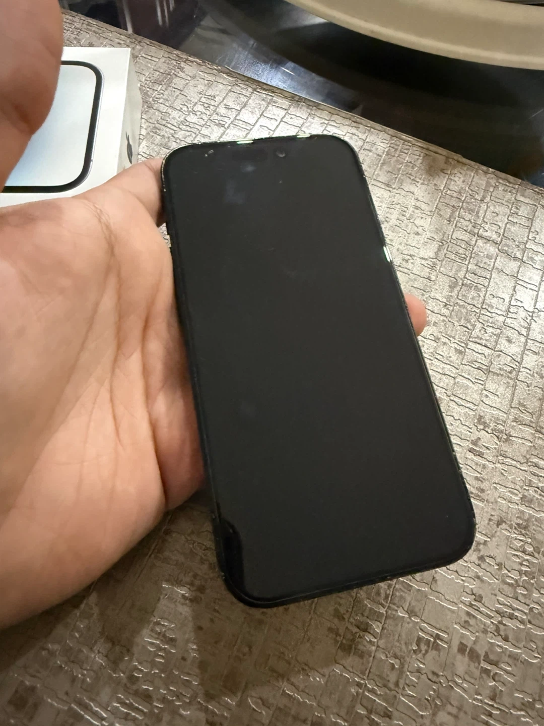 Apple iPhone 14 Pro in Space Black. This phone comes with a USB-C to Lightning cable. It's designed by Apple in California and includes original packaging.