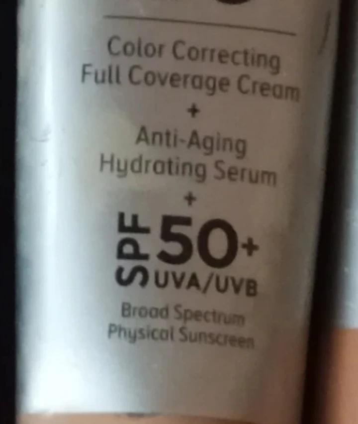 This color correcting cream offers full coverage and contains an anti-aging hydrating serum with SPF 50+ broad spectrum
