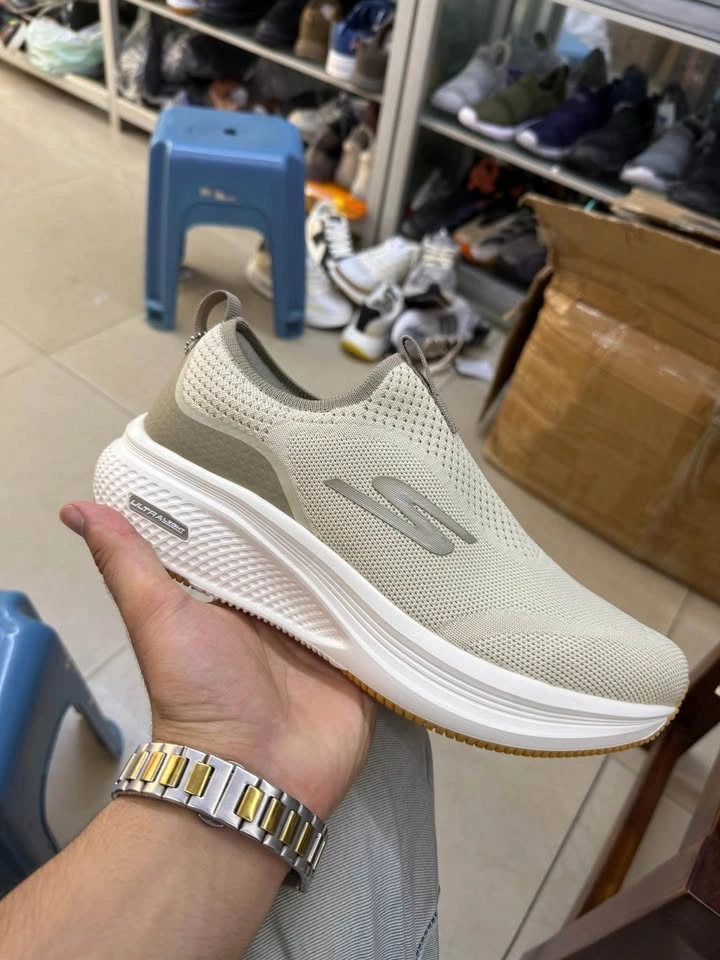 Clearing out the last few pairs of Skechers slip-on sneakers to make space for new inventory.