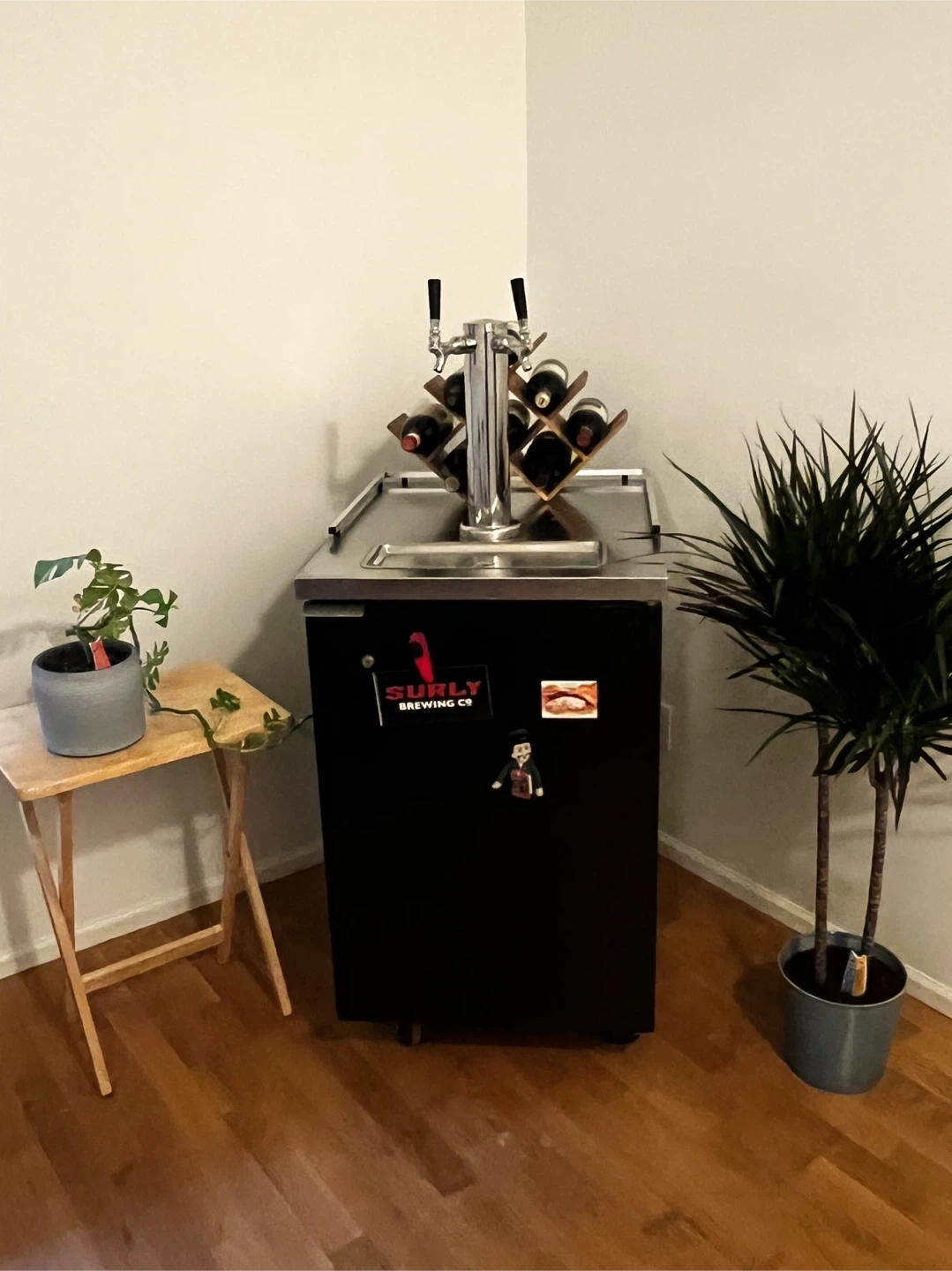 • Capacity: Holds two 5-gallon corny kegs plus a 5-gallon CO₂ canister (can negotiate CO2 tank if interested)