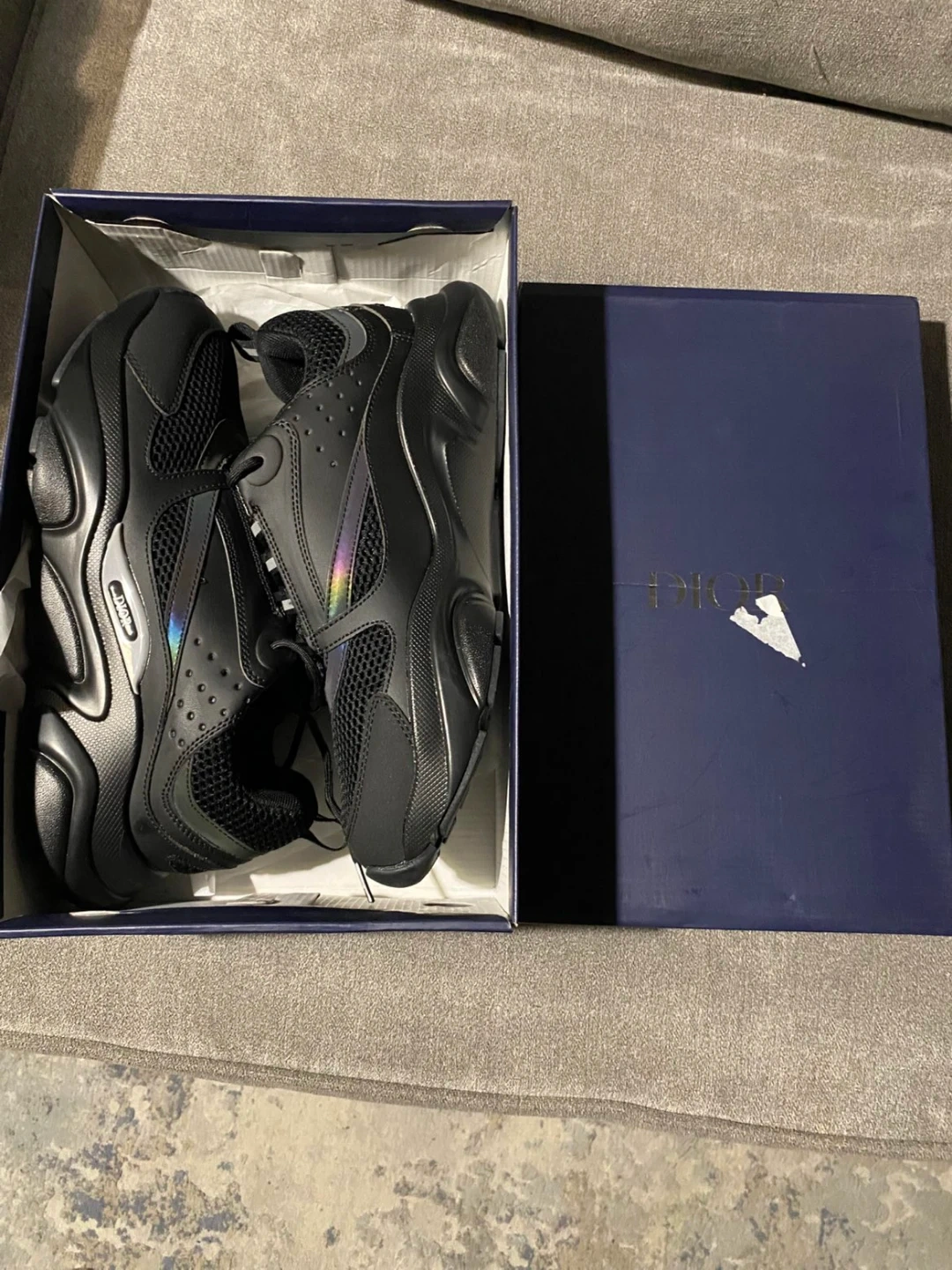 These are Dior B22 sneakers in black calf mesh. Made in Italy. Includes original box and dust bag.