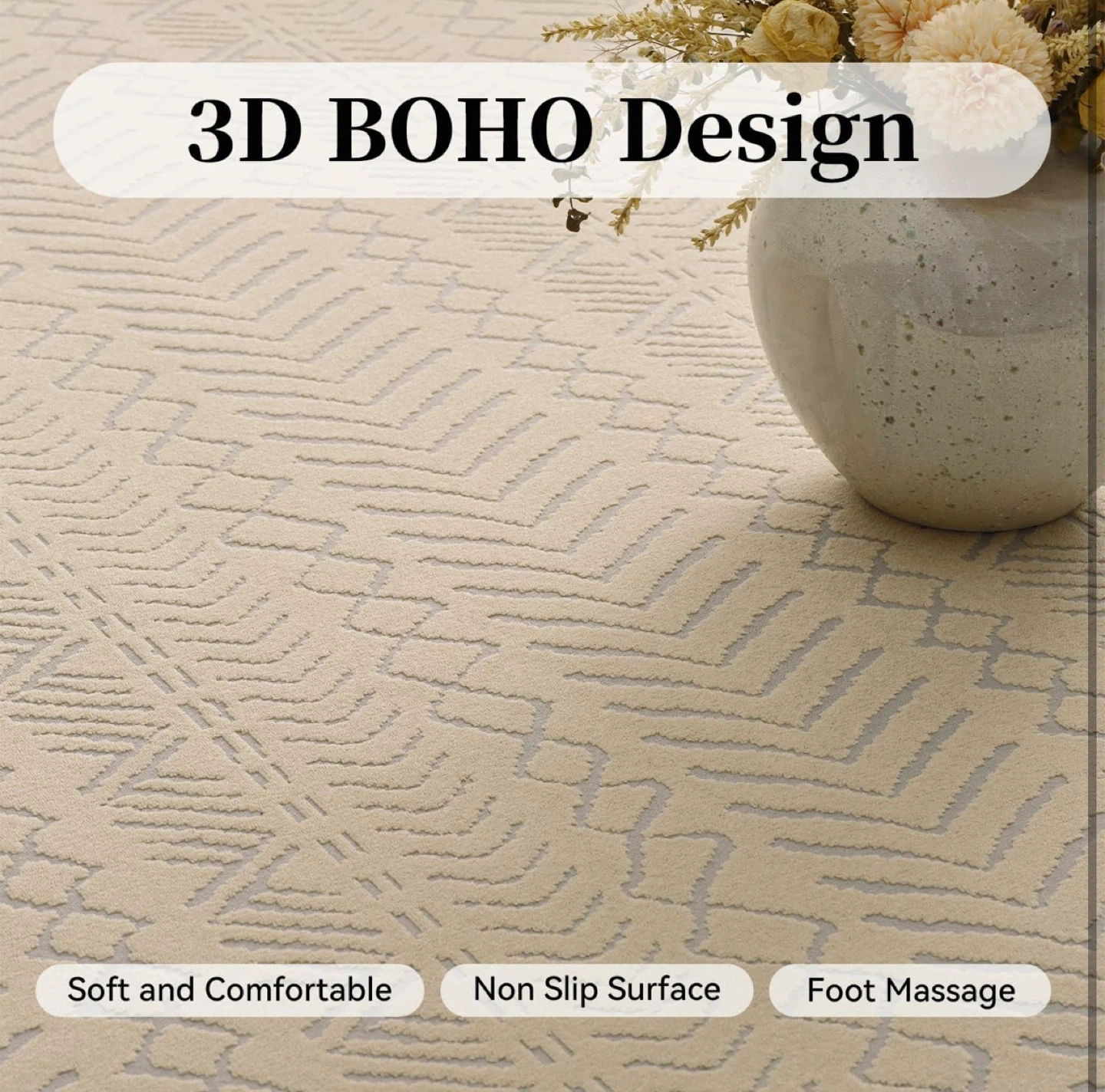 Add some style to your home with this 3D Boho design rug! It's a Khaki colour and measures 8' x 10' (Rectangular). It's soft and comfortable, with a non-slip surface. It can even give you a foot massage! It's also machine washable, so it's easy to keep clean. Originally bought for $199.99