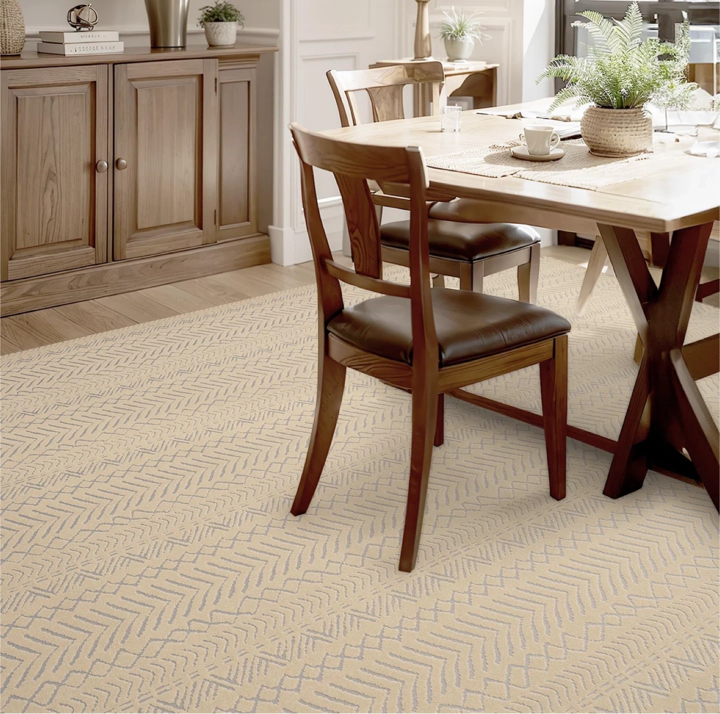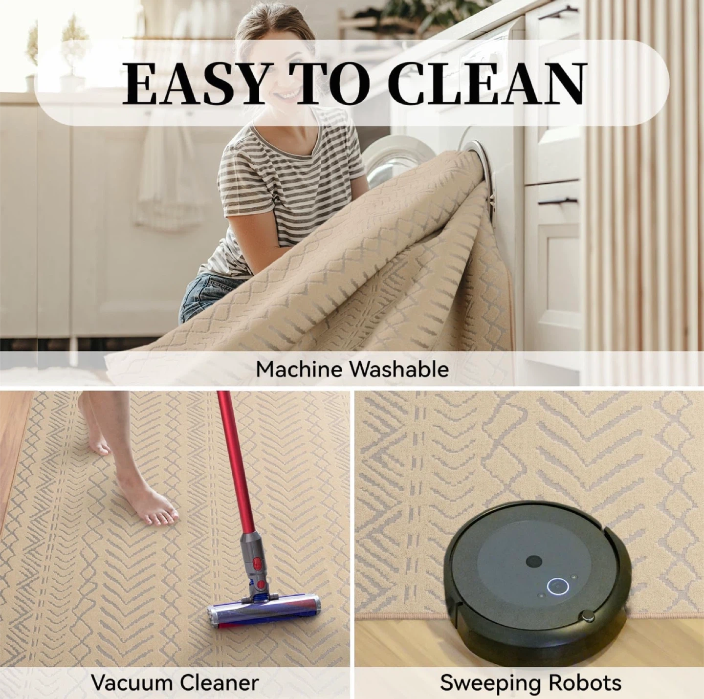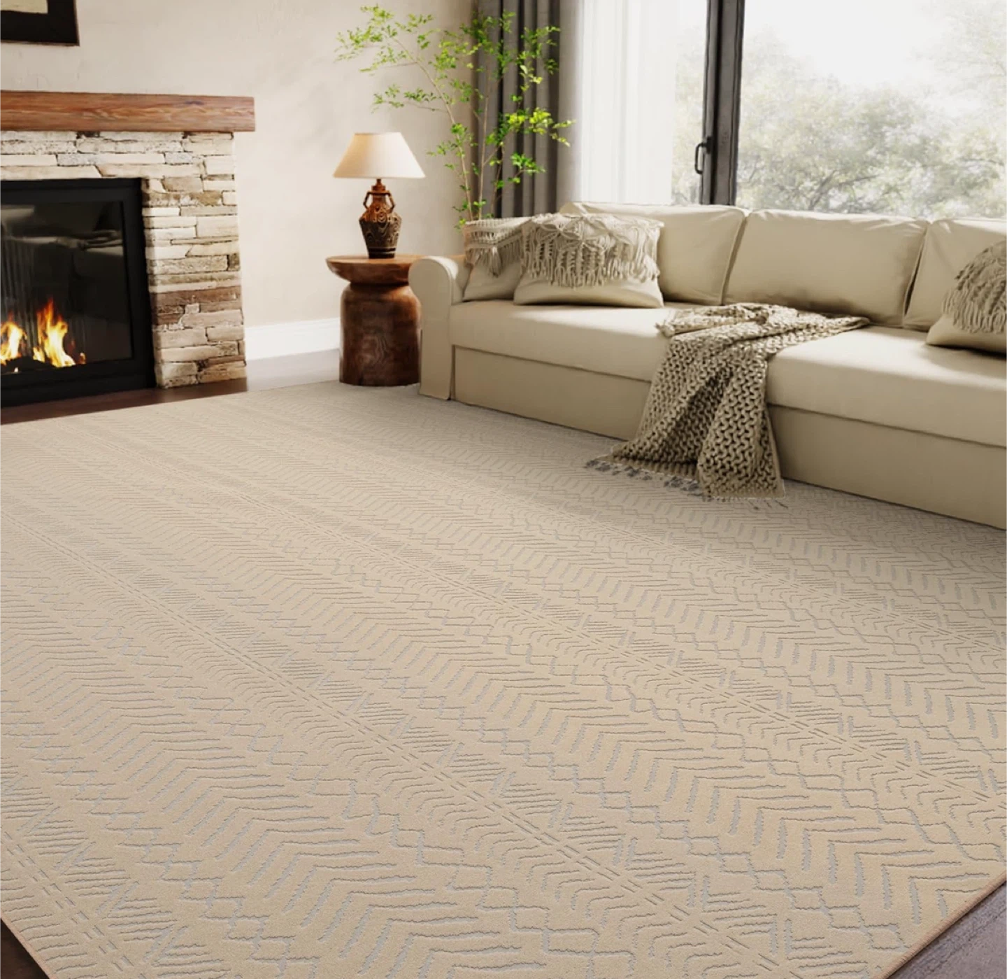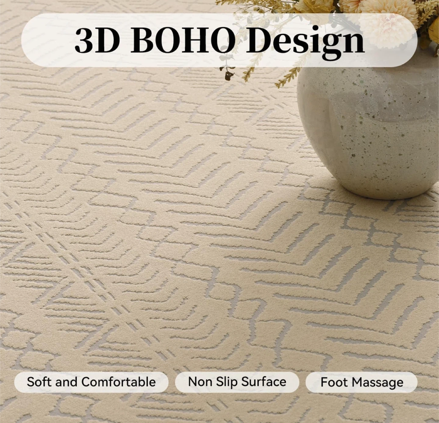 Looking to add a touch of comfort and style to your home? This khaki-coloured area rug features a beautiful 3D Boho design. It's soft, comfortable, and has a non-slip surface, making it perfect for any room. It's also easy to clean, being machine washable and vacuum cleaner friendly! The size is 8' x 10'. Originally bought for $199.99