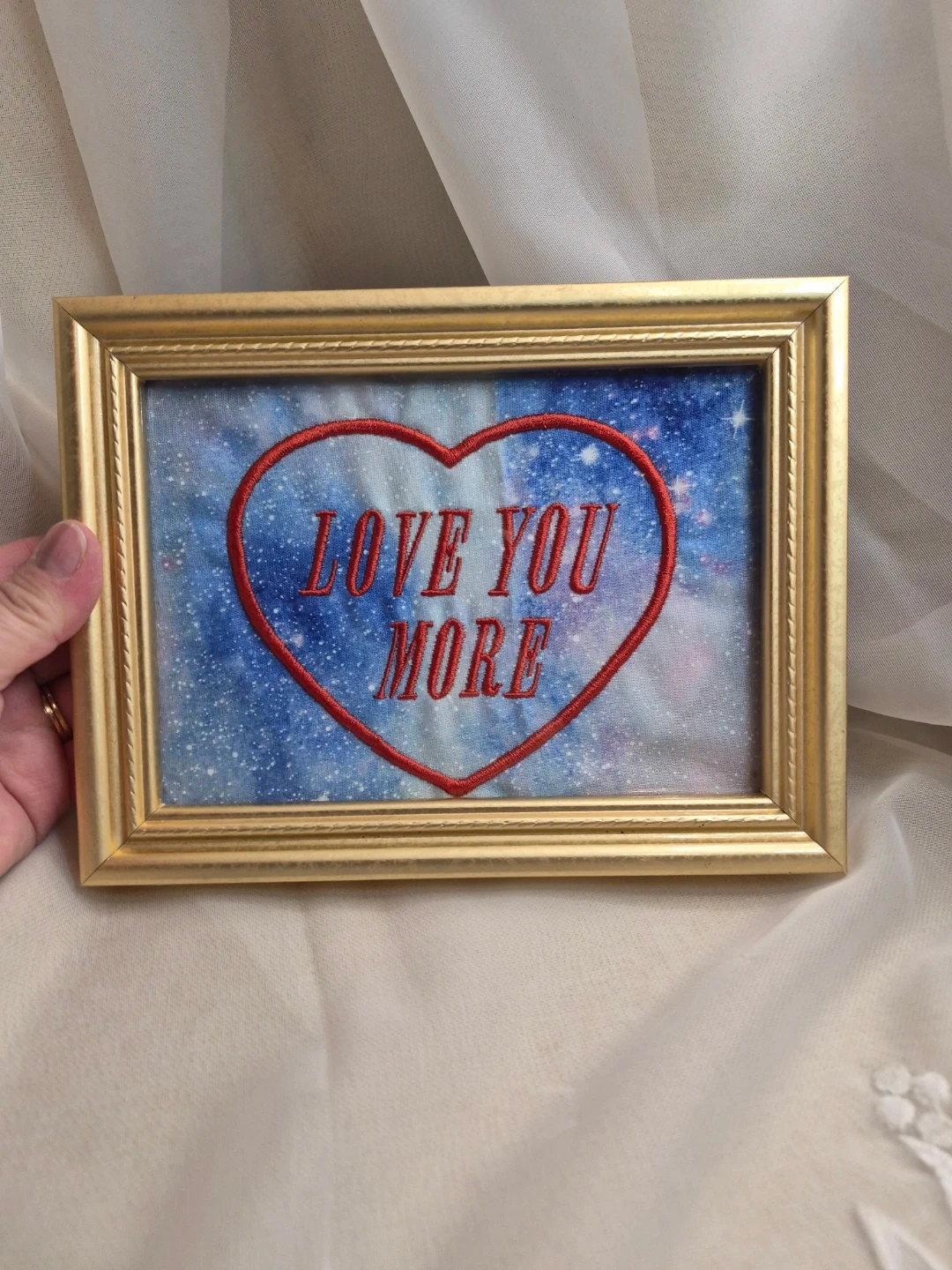 Love You More Framed Embroidered 5x7 Wall Decor - Excellent Condition please see all pictures