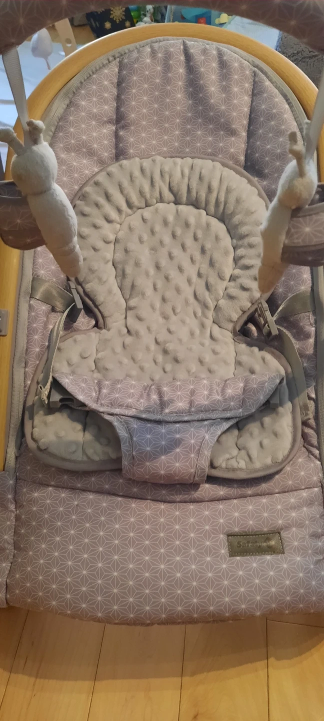 Barely used Safety 1st Amherst Rocker in the Stardust pattern. It has a plush fabric seat with a gentle rocking motion. It's designed for baby's comfort and can be used from birth. Manufactured in Feb 2025.