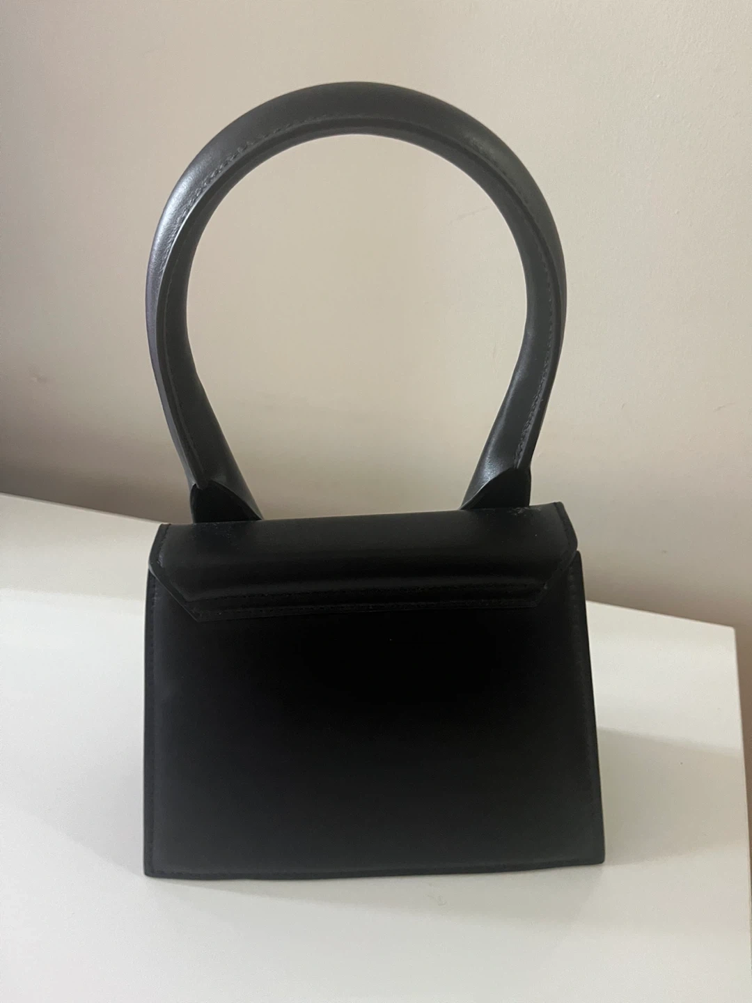 This is an authentic black Jacquemus Le Chiquito mini bag. It's made of leather and has a top handle closure.