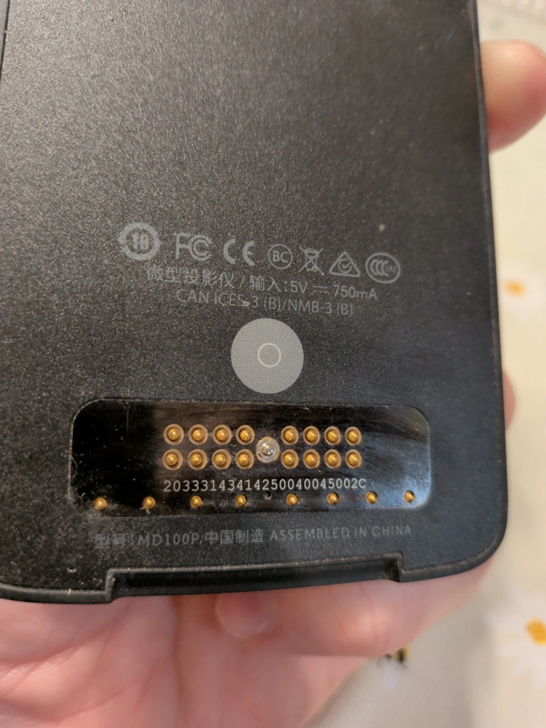 This projector mod itself has a built-in battery, but can also operate from a battery of a compatible Motorola phone - any of the Moto Z series phones. (From Moto Z to Moto Z4 - the "Z Play" or "Z Force" series)