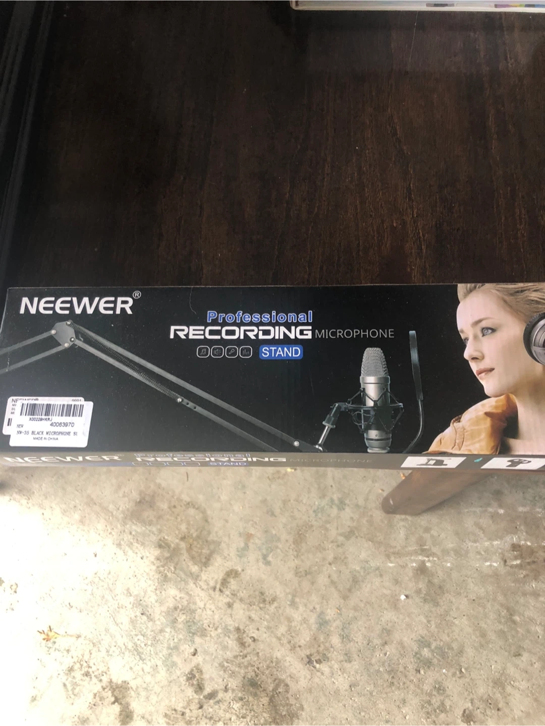 Neewer Professional Recording Microphone Stand in black. This stand is for recording microphones. It's made in China. This item would be useful for podcasters and streamers.