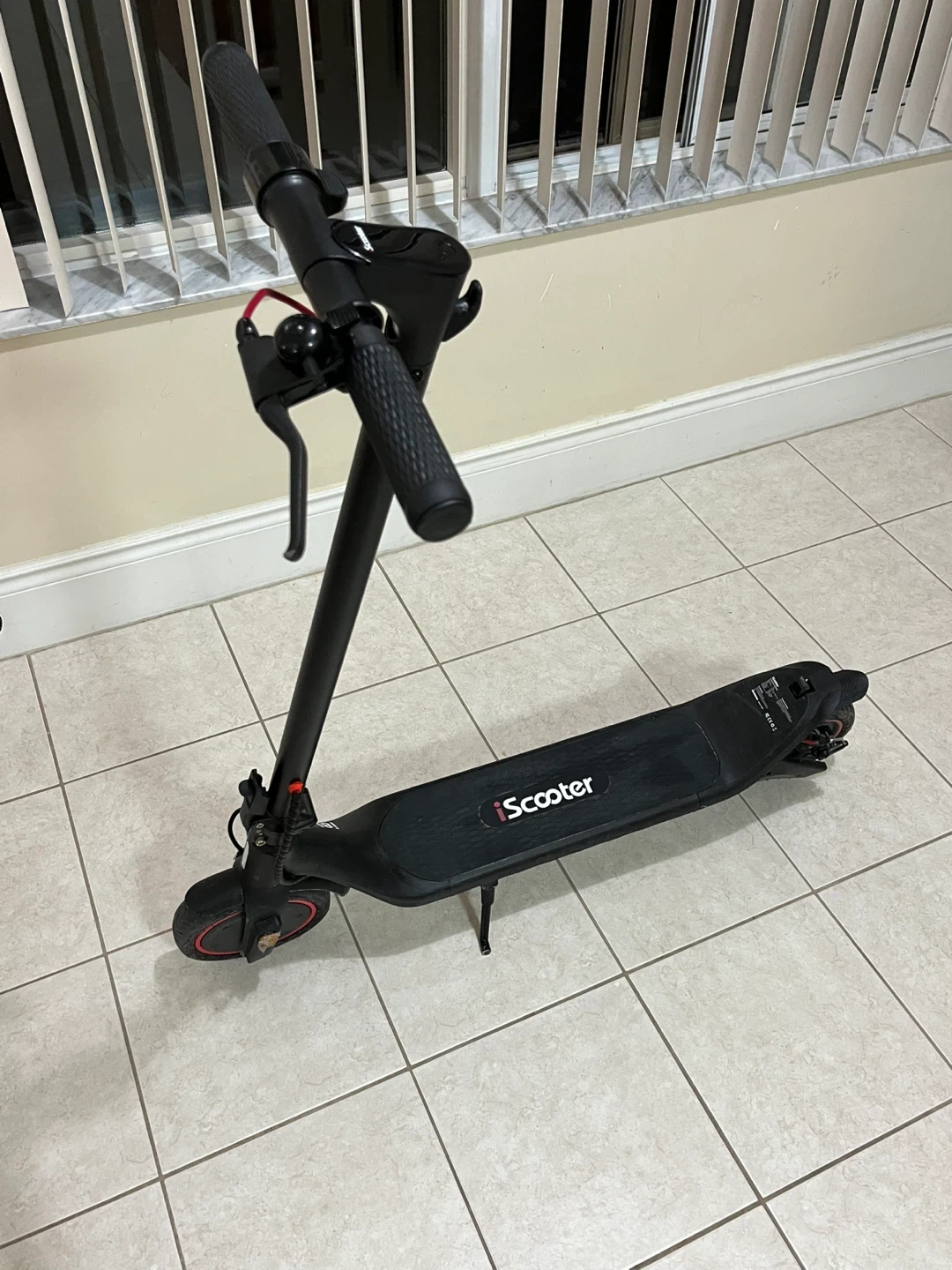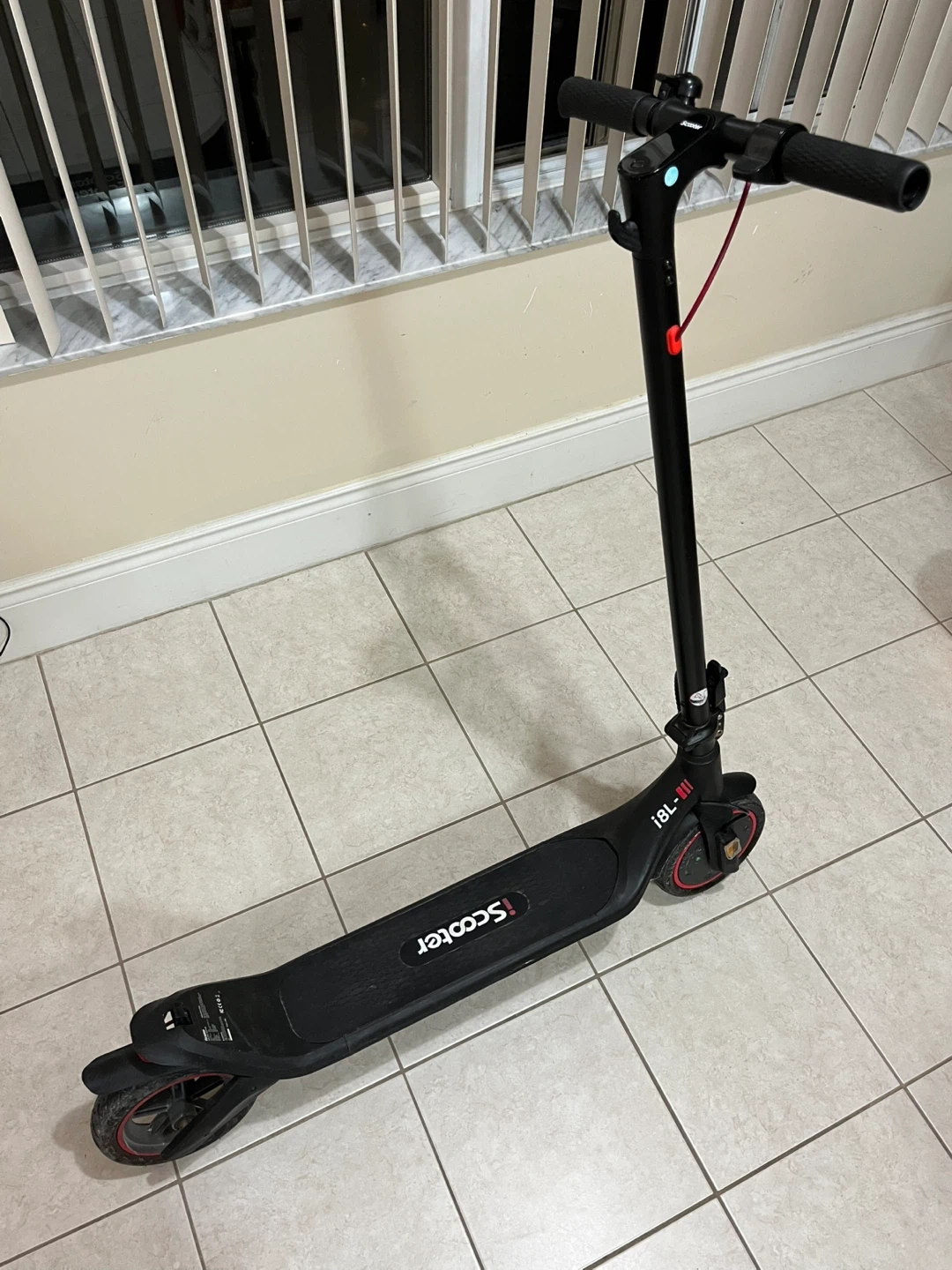 Selling a used iScooter i8L electric scooter in good working condition with 3 speed modes (10 km/h, 20 km/h, and 30 km/h), it rides smoothly and is great for commuting or short trips, it has a few small scratches from normal use that do not affect performance, comes with the charger, and the battery may need replacement in about 7 months.