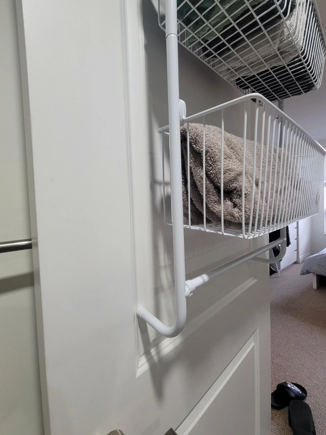 It's designed to hang over a door, perfect for storing towels, socks, underwear or other essentials.