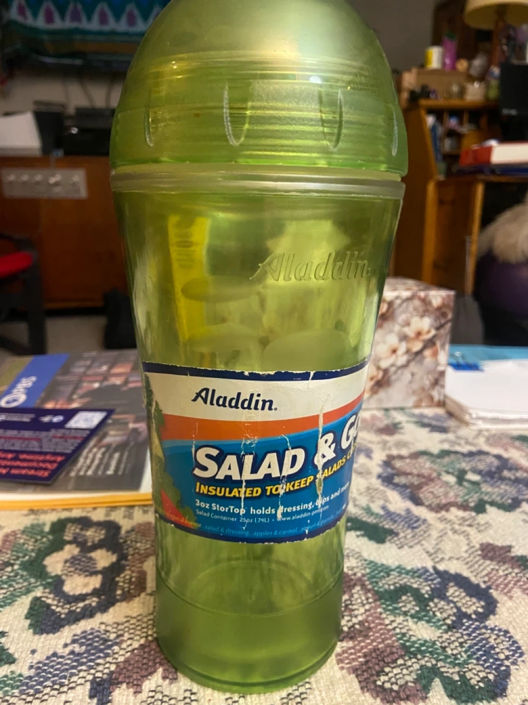 This Aladdin Salad & Go insulated container is great for keeping your salads fresh. It holds dressing, toppings, and your salad. The container is 25oz (711ml).