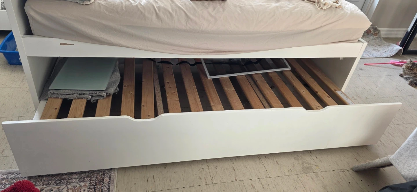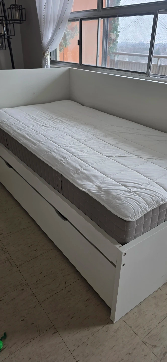 White Daybed with Trundle and Mattress with cover