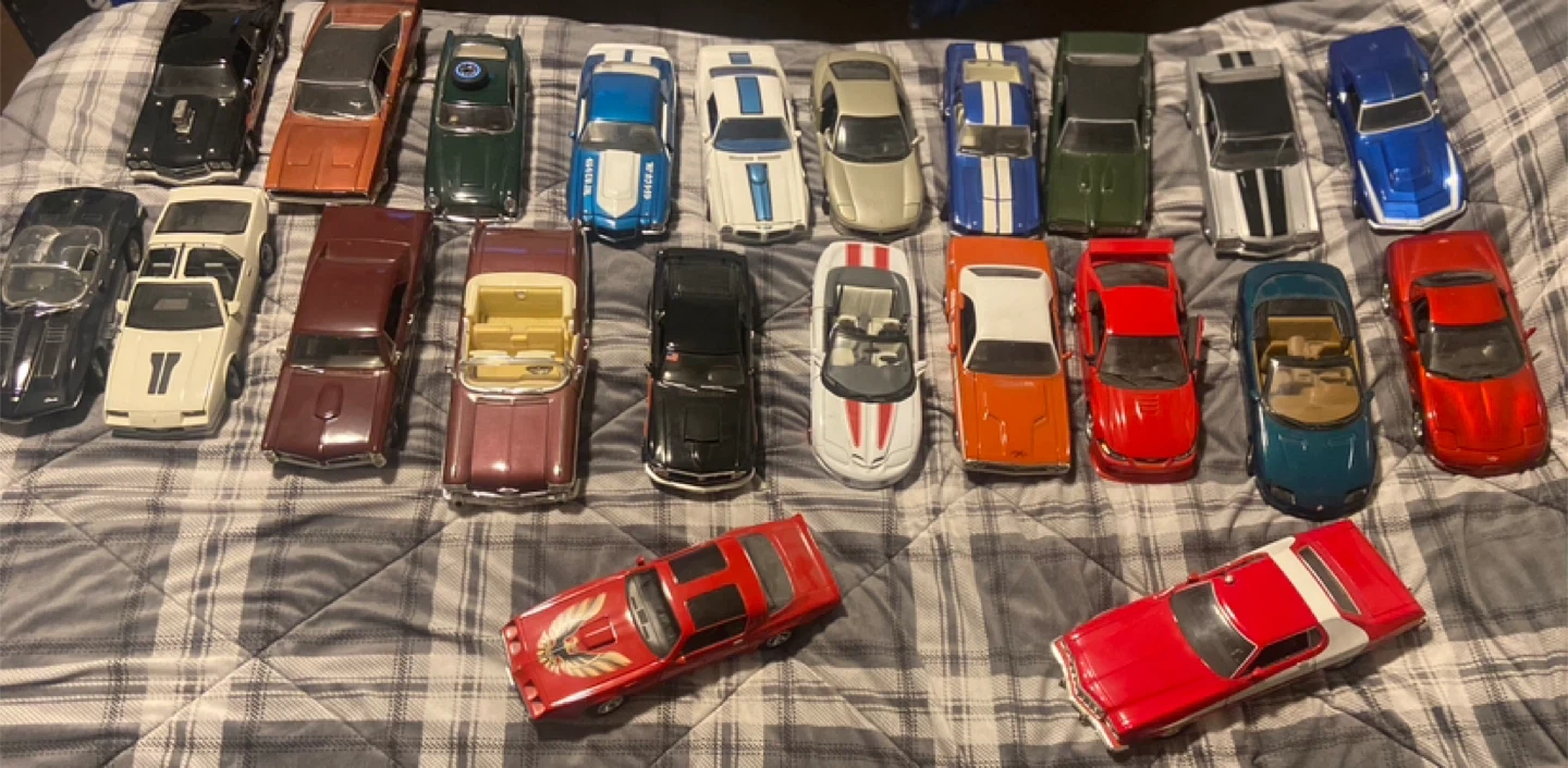 I’ve got a lot of 22 model cars for sale varying in condition. I’ve taken photos of some of the damage. Some wheels missing, windshield cracks, hood detached etc etc. That’s only a select few, the rest are in good condition, just need a good deep cleaning. All of them are out of the box. Each car is a 1/18 scale model. Some vary from hot wheels to Mattel and others. There is a photo of one of the cars measurements at about 10.5 inches. All of them are basically the same size give or take half an inch or so. Must be picked up! No shipping or delivery. Cash only, no e-transfers. Not willing to break up the set. All of them go together. Bring your own boxes to pick them up in please and thank you. Open to any and all offers. Contact me if interested. If it’s still posted, it’s still available.