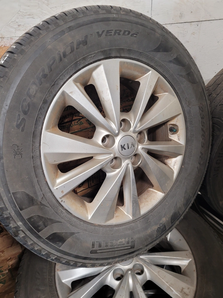 15set of 4 Kia 5x114.3 Alloy Factory Wheels with 235 65R17 Pirelli Scorpion 90% tread even wear