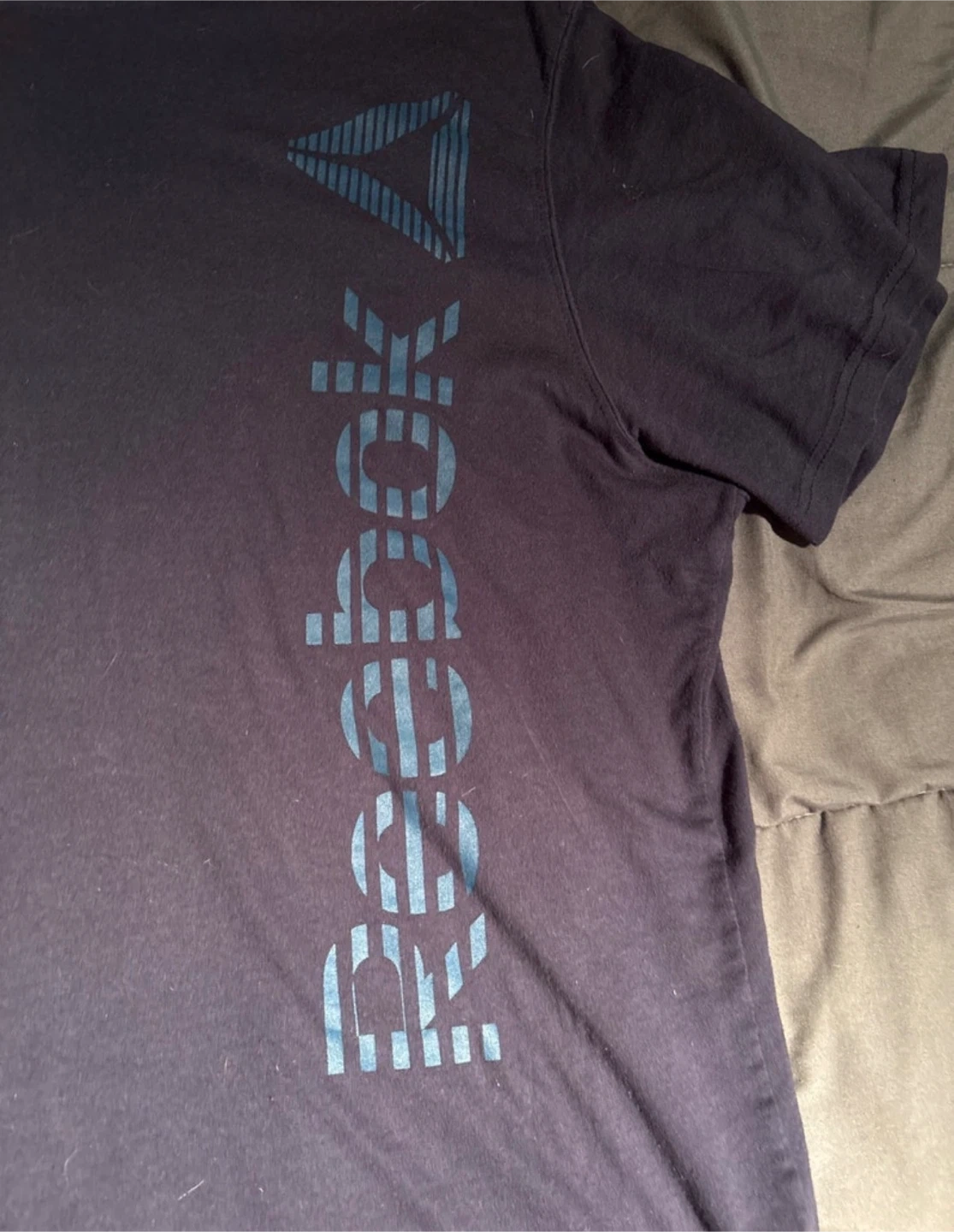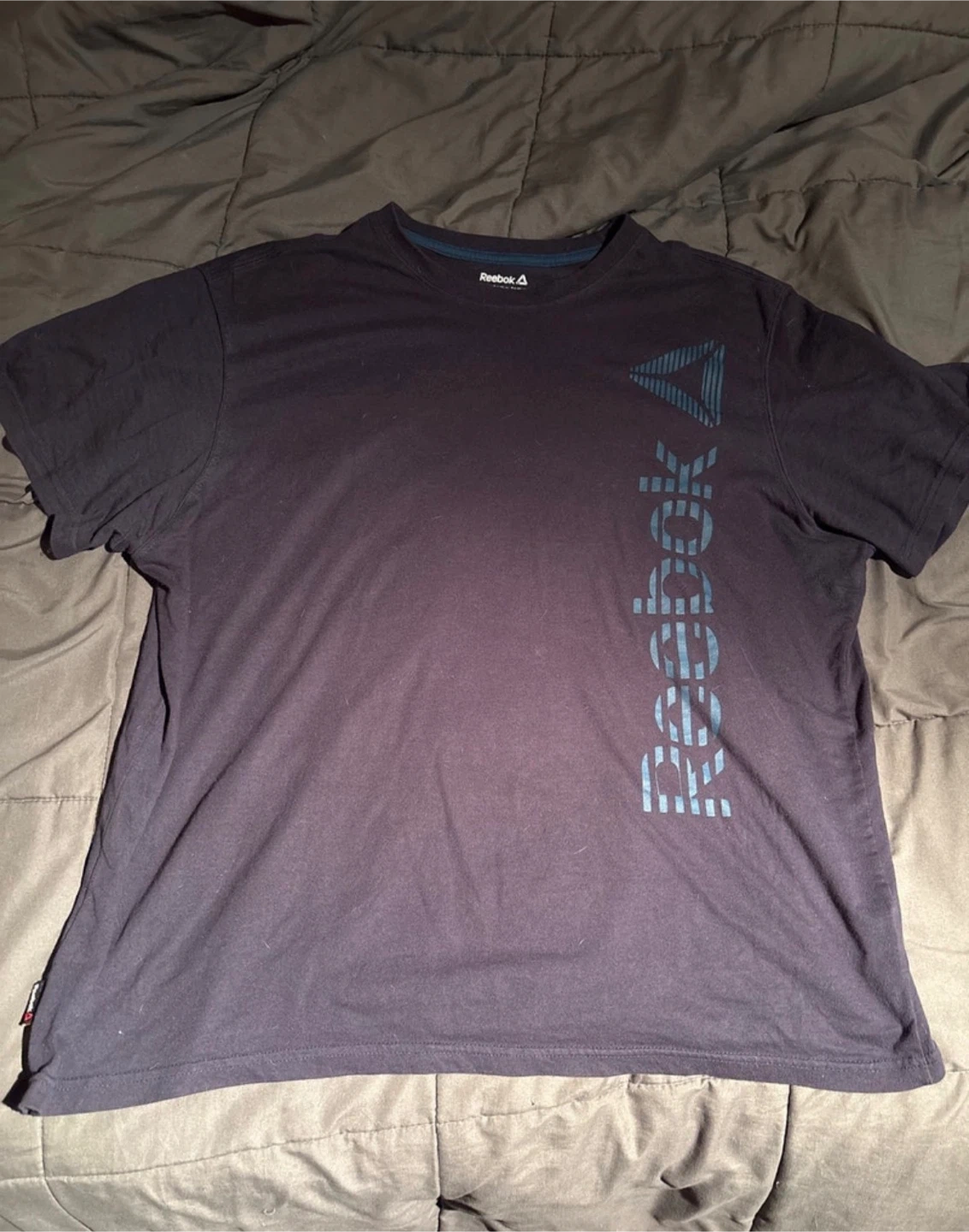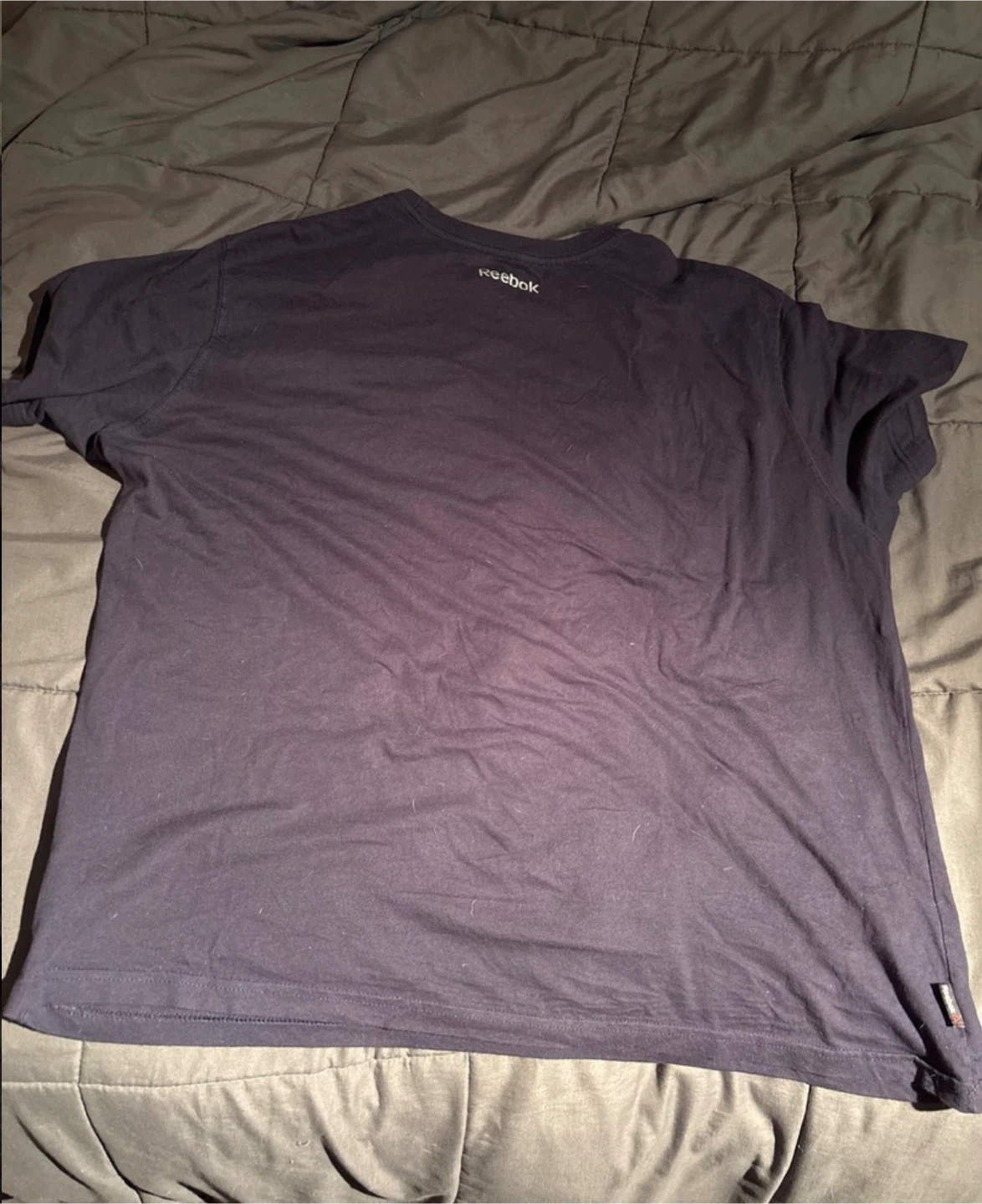 Looking to add a sporty touch to your wardrobe? I'm selling a Reebok T-shirt in size 2XL. This navy blue tee features the Reebok logo and is perfect for workouts or casual wear. It's in good condition and ready for a new home.