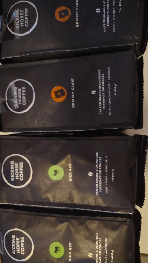 Selling bags of Kicking Horse Coffee! Available are the Grizzly Claw (rich & chocolatey) and Kick Ass (sweet & smoky) varieties. Each bag is 1 lb (454g) of organic, fairtrade coffee beans. All four bags 50.00 pickup at Victoria Park & Danfort