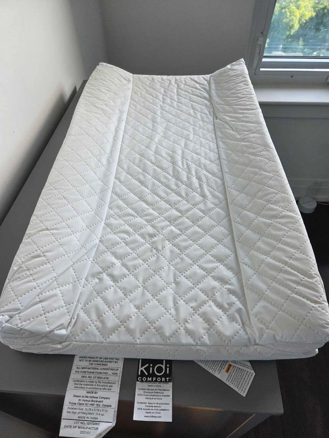 39I'm offering a Kidi Comfort Change Pad that provides a comfortable and safe space for diaper changes with its supportive foam and easy-to-clean surface. This change pad has been gently used but is in excellent condition, ready to make diaper changing a breeze for you and your little one. Specifications: * Brand: Kidi Comfort * Material: Foam with wipeable surface * Dimensions: Standard change pad size * Condition: Used - Good Looking for a change pad that combines comfort and practicality? This Kidi Comfort change pad is just the ticket! It's like a soft cloud for your baby during changes. And don't worry, if you're reading this, it's still available!