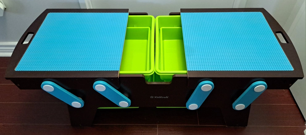 60Dimensions: Length 35 1/4" x Depth 19" x Height 15 1/2". Selling a KidKraft Lego play table! It’s in great shape and ready for a new home. It features a play surface compatible with LEGO bricks and DUPLO blocks, and it also includes storage bins to keep everything organized. Perfect for hours of creative fun!