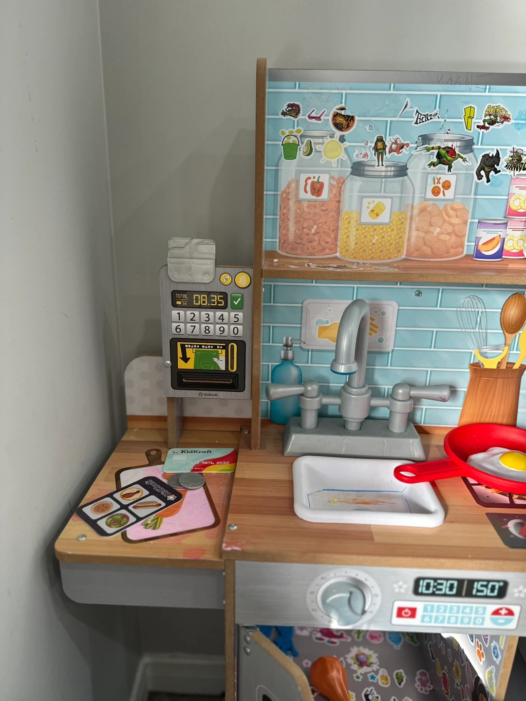 22Selling a cute KidKraft play kitchen! It's in great shape and ready for a new little chef to enjoy. Features include a sink, oven, and stovetop with fun details like knobs and a play control panel. Perfect for imaginative play!