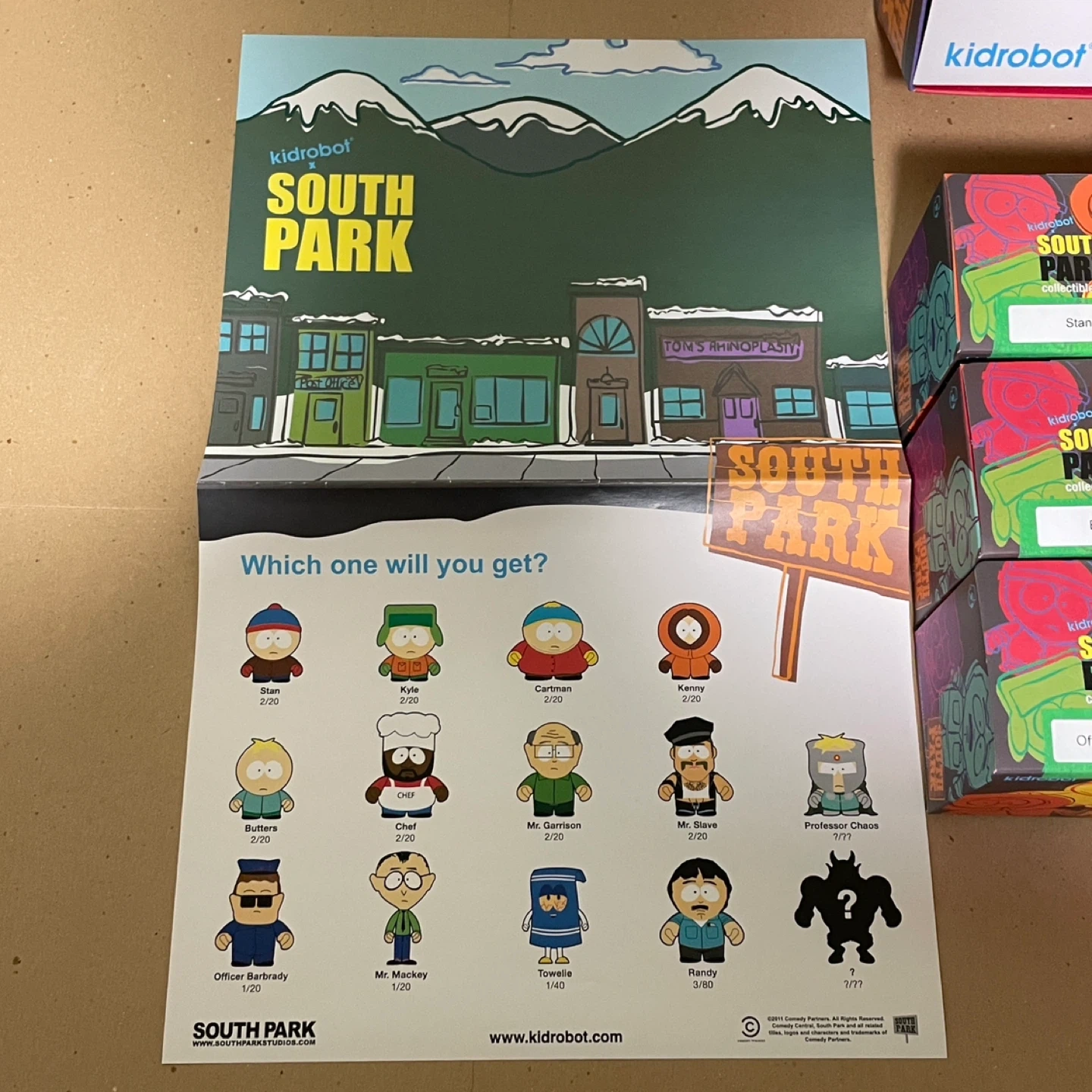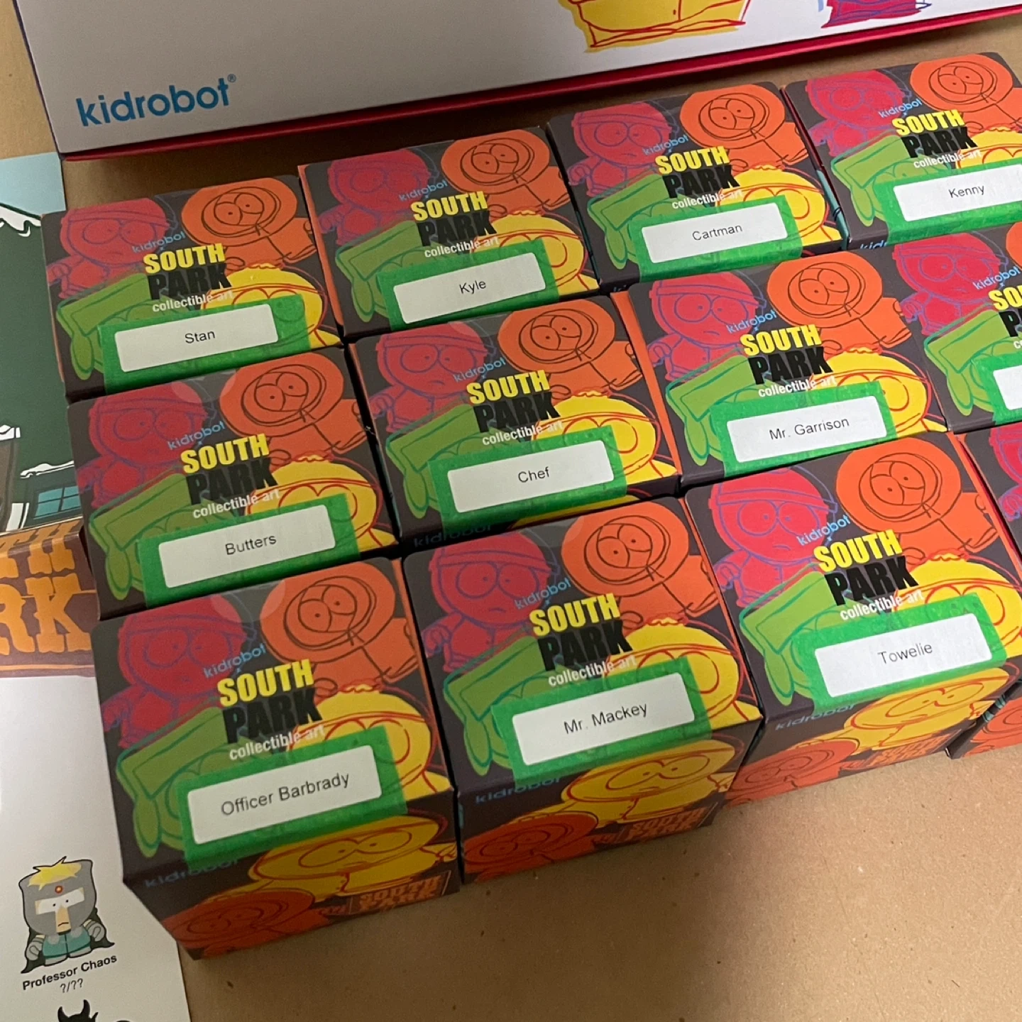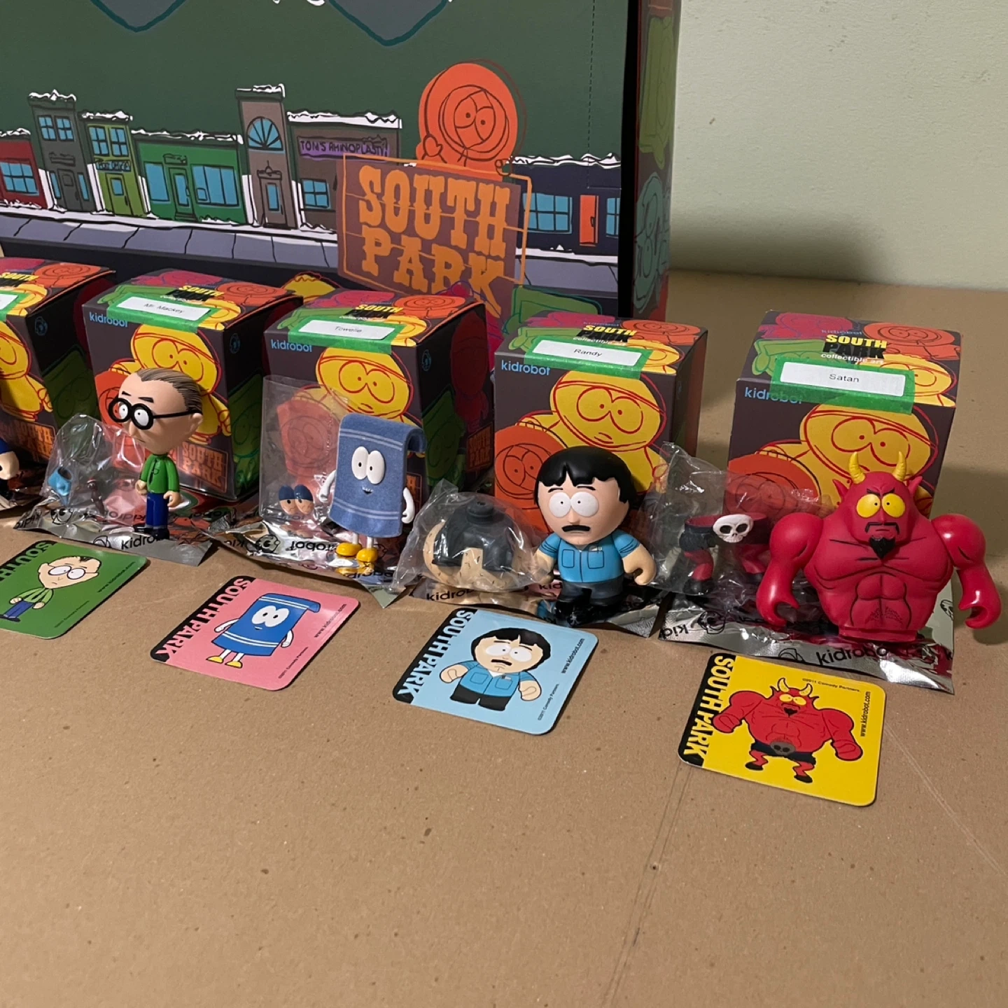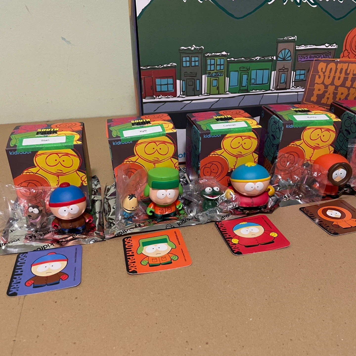 1000+π Pick up at 200 Wellesley St E The complete first series set of 2011 Kidrobot South Park Collectible 3β Vinyl Figurines. These were blind box figures, so it took awhile to collect all the characters. Each box is labeled with character name on painters tape (easily removable). Boxes are complete with original foil wrapping, sticker card, and figurine toy. All boxes are open from the bottom so the original top seal remains intact. The set comes with a display box plus poster and everything is in excellent condition. Figurine accessories are still sealed in original plastic. This complete collection includes exclusive rare characters that are very hard to find. CHECK MY OTHER ADS
