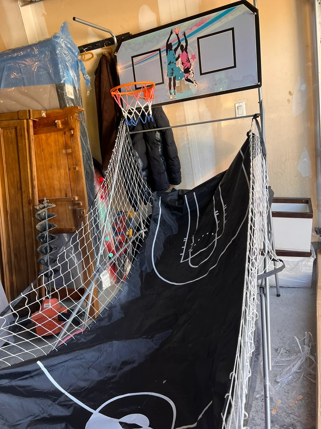 It’s very good for kid indoor or outdoor. It used for 5 times. It has 4 balls too.