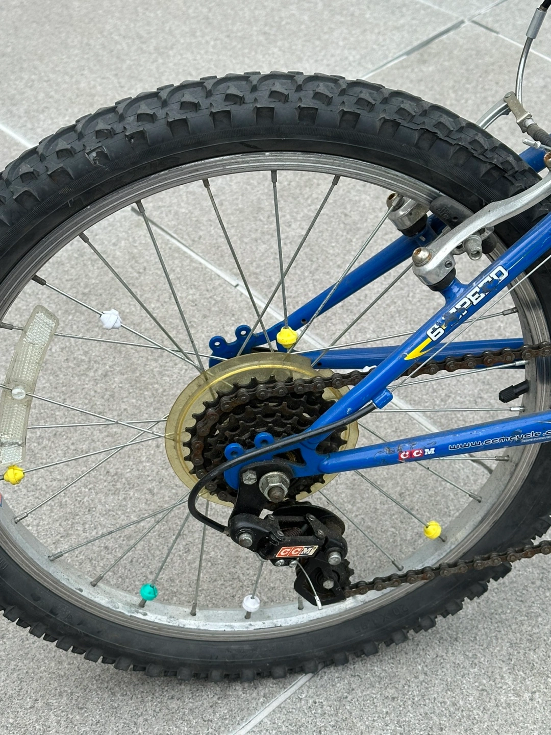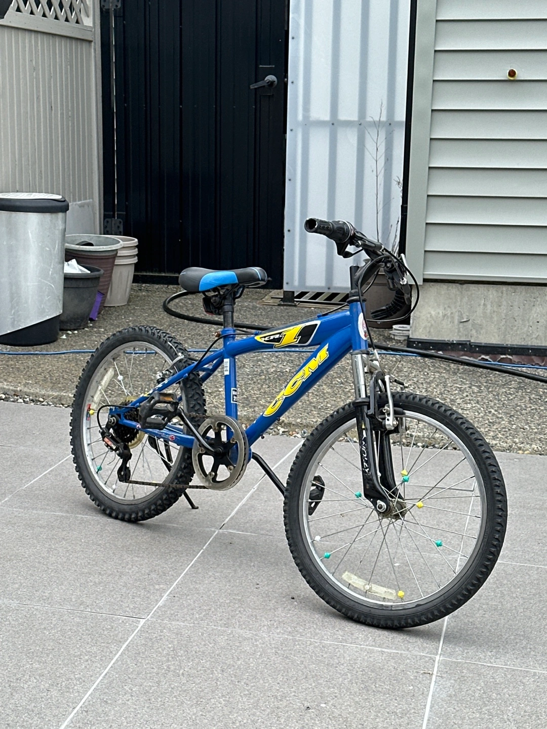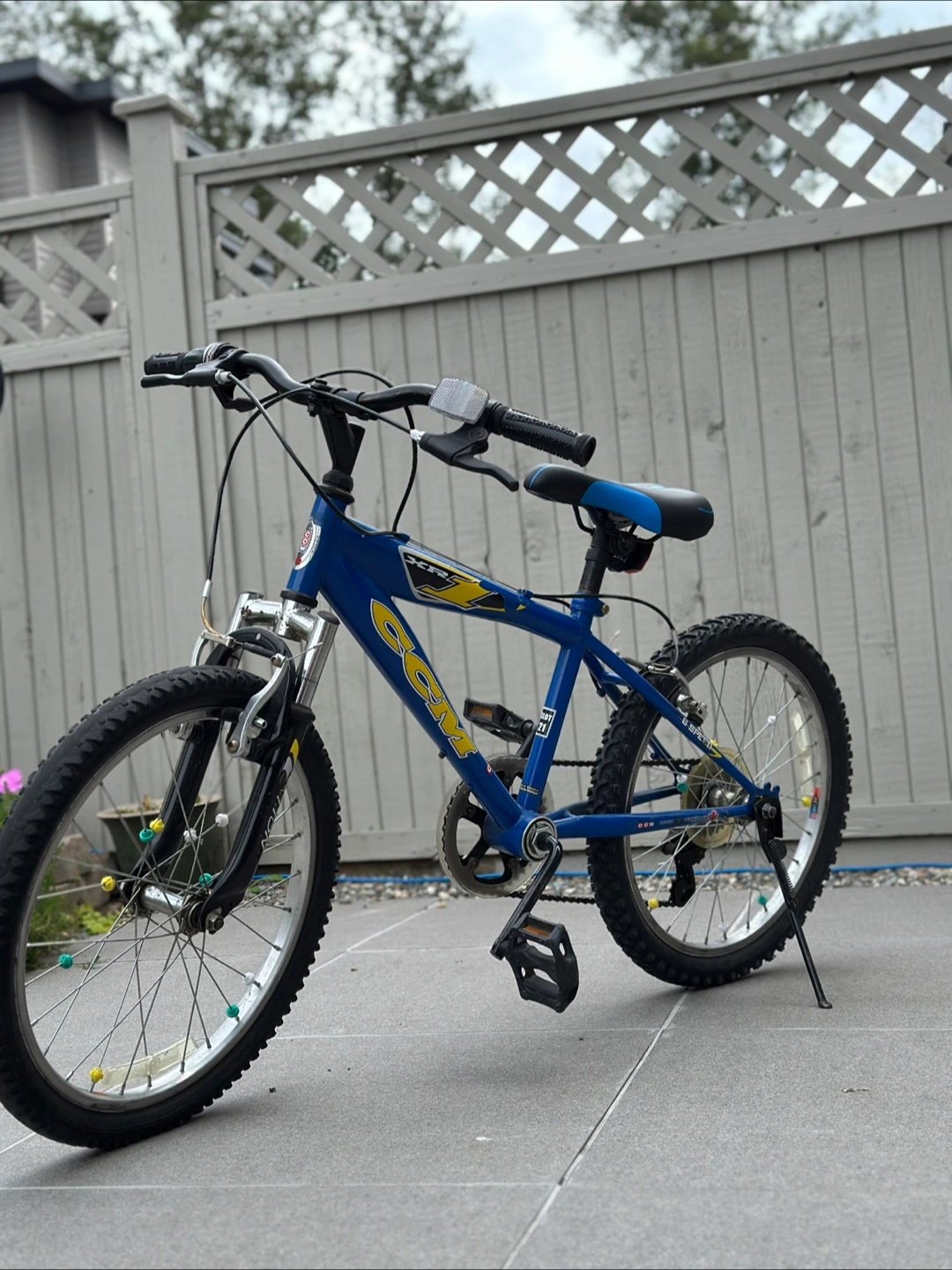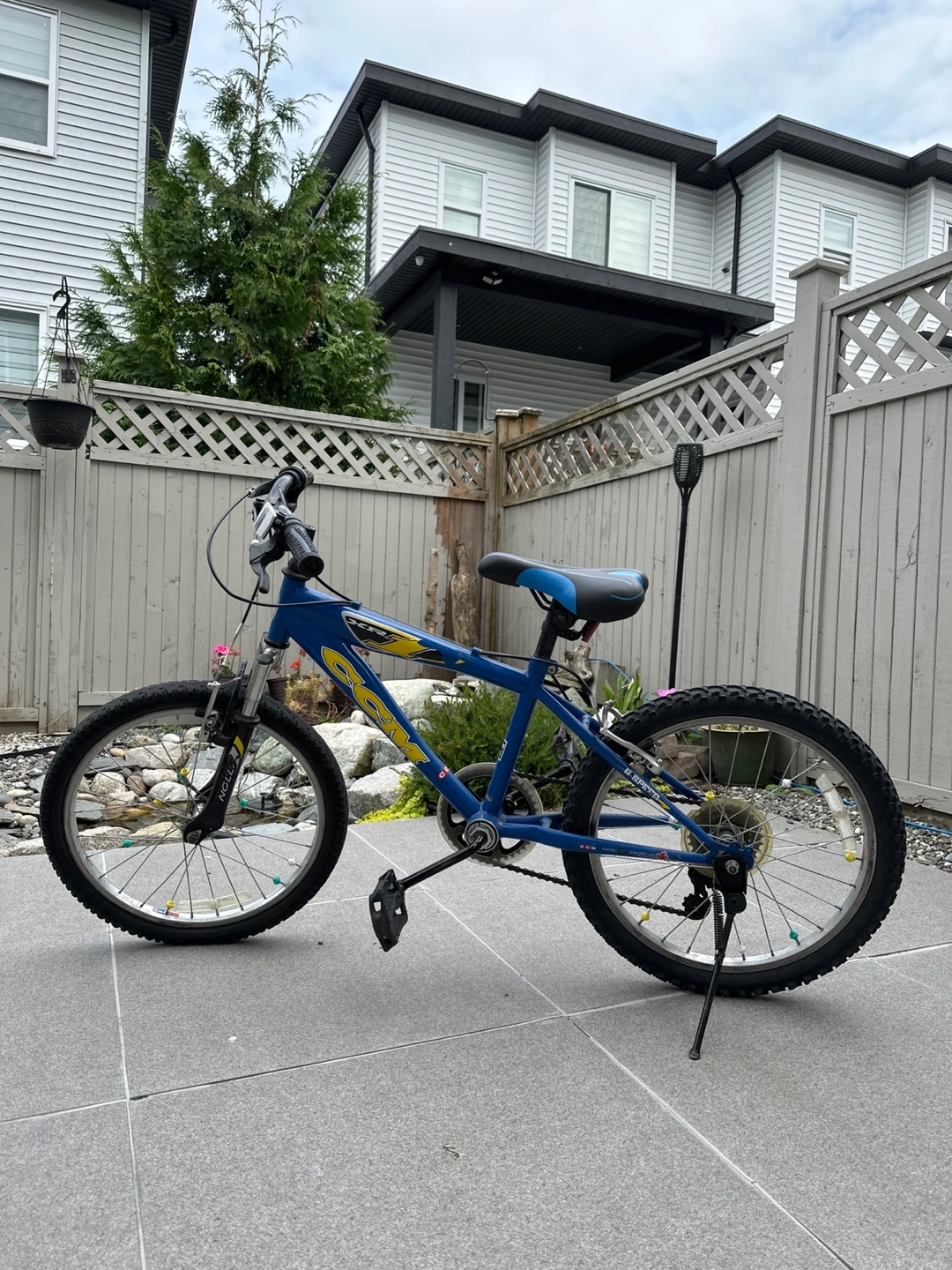 Selling a CCM 20-inch kids' bike in blue and yellow. It's perfect for young riders ready for some outdoor fun! The bike appears to be in good condition and ready to roll. Bike has gears as well!!!!