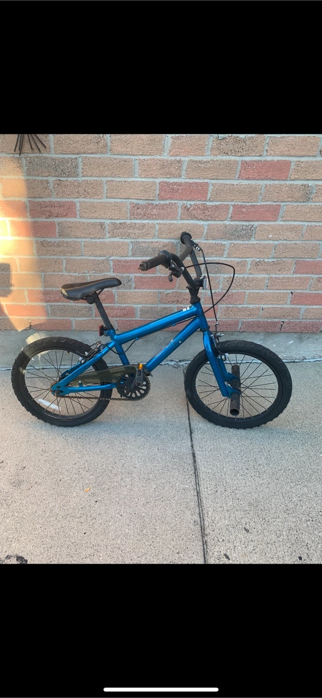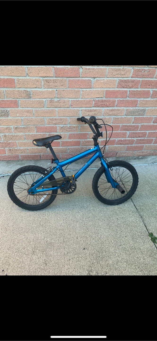 Kids Bike with BMX Wheel Pegs The BMX Pegs at the tire is used for lots of reasons, it can give another friend a ride on the bike by standing on the pegs. It is also used for doing fun tricks on the bike and BMX riding. It is the perfect ride for your child! Complete with a reliable coaster brake, this bike is equipped to give your child what they need to feel confident and in control as he/she adventures. The durable steel frame has an awesome look that your child will love, and safety features that you can feel good about! The chainguard helps to protect your child's fingers and the padded handlebar and durable steel frame are the ready for whatever the neighborhood rides may bring. Your rider will be rocking and rolling in no time! * Frame: Durable steel frame in sleek blue is ready for whatever adventures are ahead! * Comfort: The padded saddle and soft grips will keep your child comfortable as he/she learns to ride, and the junior-sized pedals are perfect for small feet! * Brakes: The easy-to-use coaster brake gives your child confidence with the quick stopping power engaged by simply moving fingers Teach your kid the fun outdoors and outdoor play, being physically active and getting excercise. And to limit screen time looking at screens Great exercise, help them love exercise and physical fitness at a early age and they will be healthy Offline, help them stay off and limit screen time and tv, and enjoy a fun activity and acquire new skills Cheap - message me Can be picked up or delivered