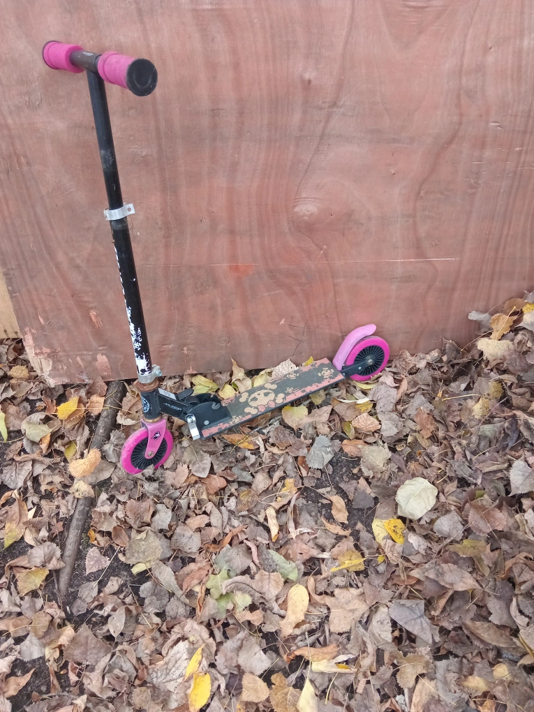 28Selling a used black bratZ kids' scooter with pink accents! It's perfect for learning to scoot around the neighbourhood or park. Shows signs of use.