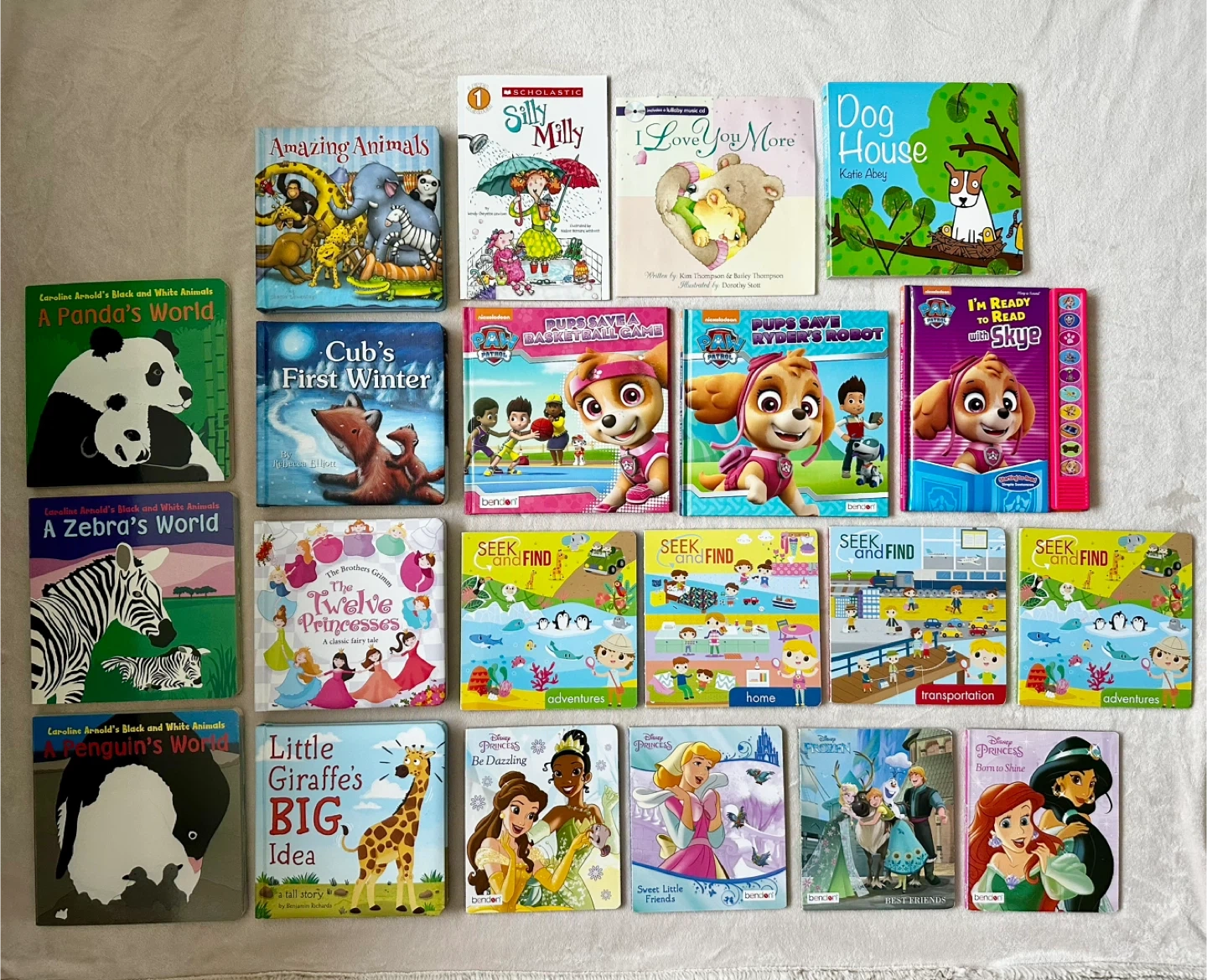 65Selling a bundle of gently used kids' books! Great for toddlers and young children. Includes a variety of titles, from animal stories to princesses and interactive seek-and-find books. Perfect for bedtime stories or early learning.