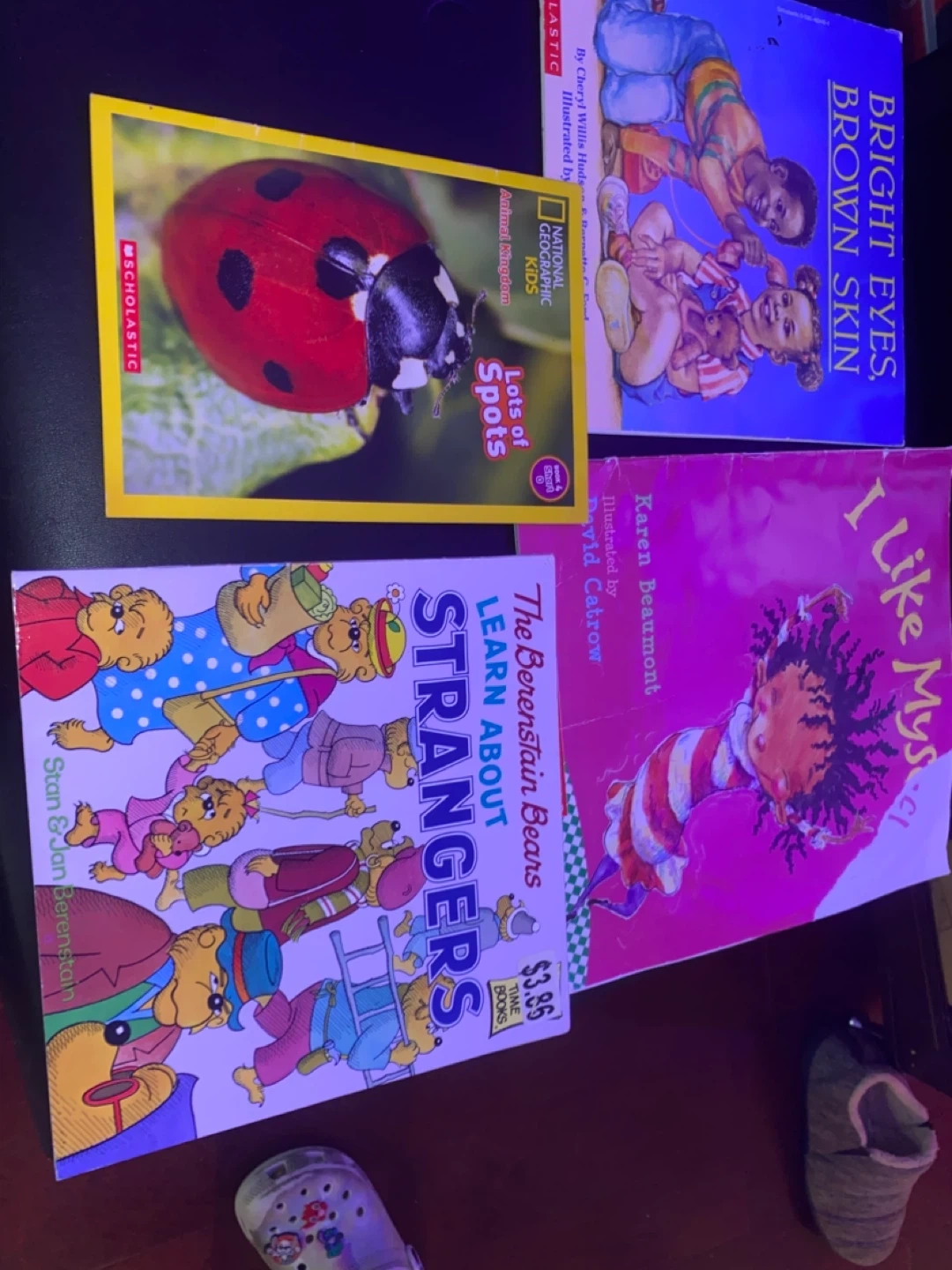 Selling a bundle of children's books! Includes: - The Berenstain Bears Learn About Strangers by Stan & Jan Berenstain - Bright Eyes, Brown Skin by Cheryl Willis Hudson - National Geographic Kids: Lots of Spots - I Like Myself by Karen Beaumont All the books come together for one price