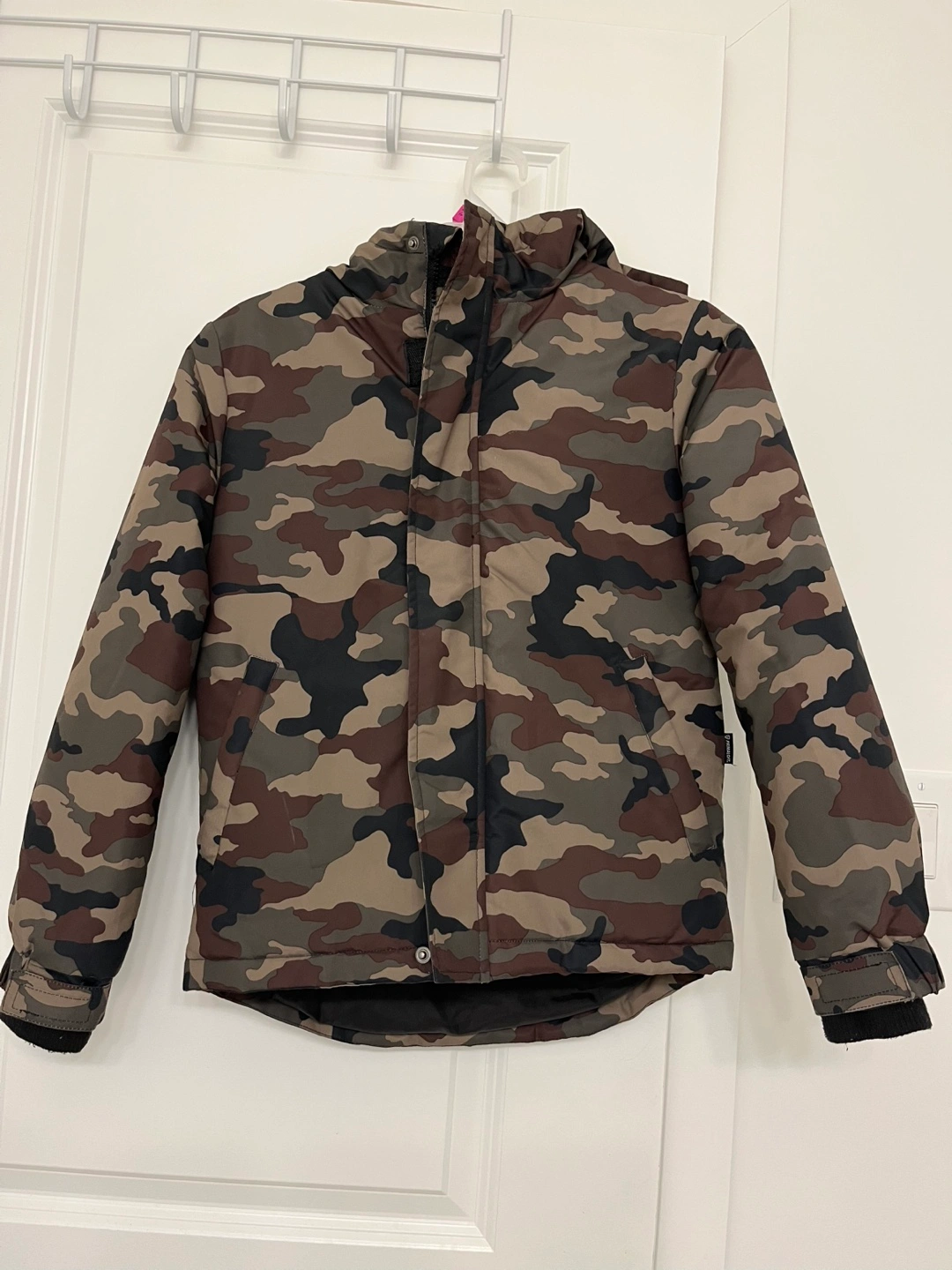 48Boys' Winter jacket. Camo print. Zip-up front. Hooded. Great for cold weather.