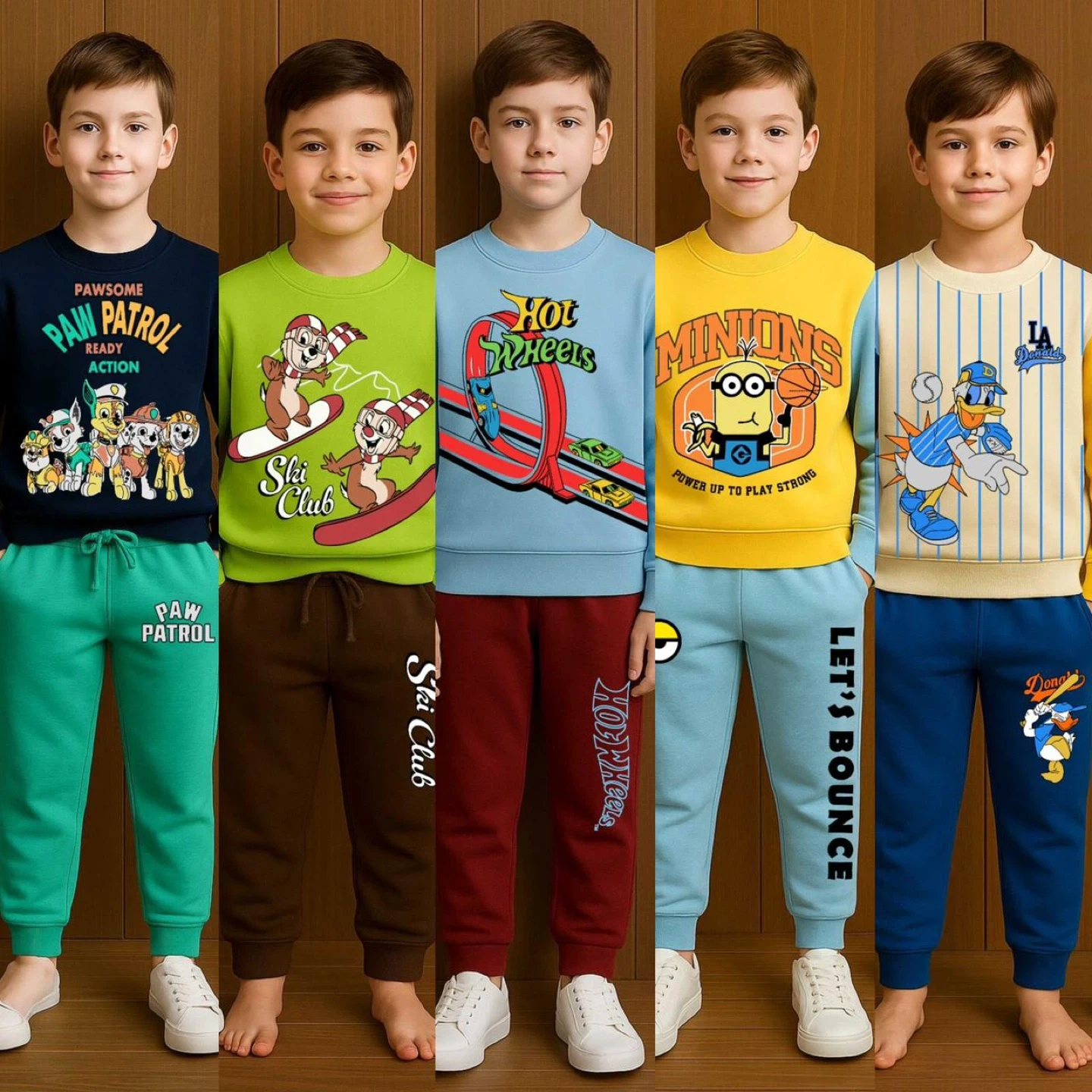 10Selling a variety of adorable kids' sweater and sweatpant sets featuring popular characters like Paw Patrol, Chip and Dale Ski Club, Hot Wheels, Minions, and Donald Duck! Each set includes a matching sweater and sweatpants, perfect for keeping your little one comfy and stylish. Great for everyday wear or lounging around the house