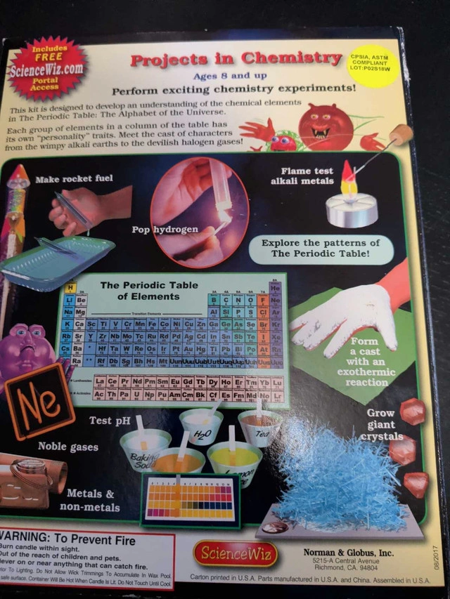 10Explore the wonders of science with this ScienceWiz Chemistry+ kit, perfect for kids aged 8 and up! The kit includes various tools and instructions to perform exciting chemistry experiments and learn about the periodic table. This kit is in used condition, but contains all the pieces for a fun learning experience. Unleash your inner scientist and dive into the alphabet of the universe! Please note: if the ad is up, it's still available!
