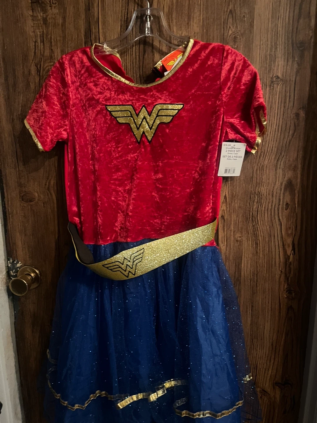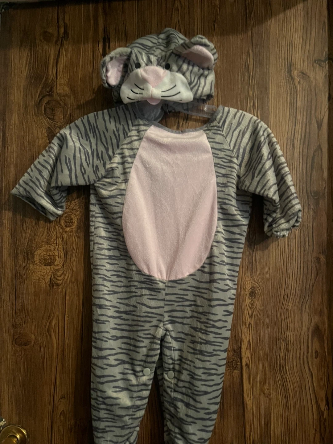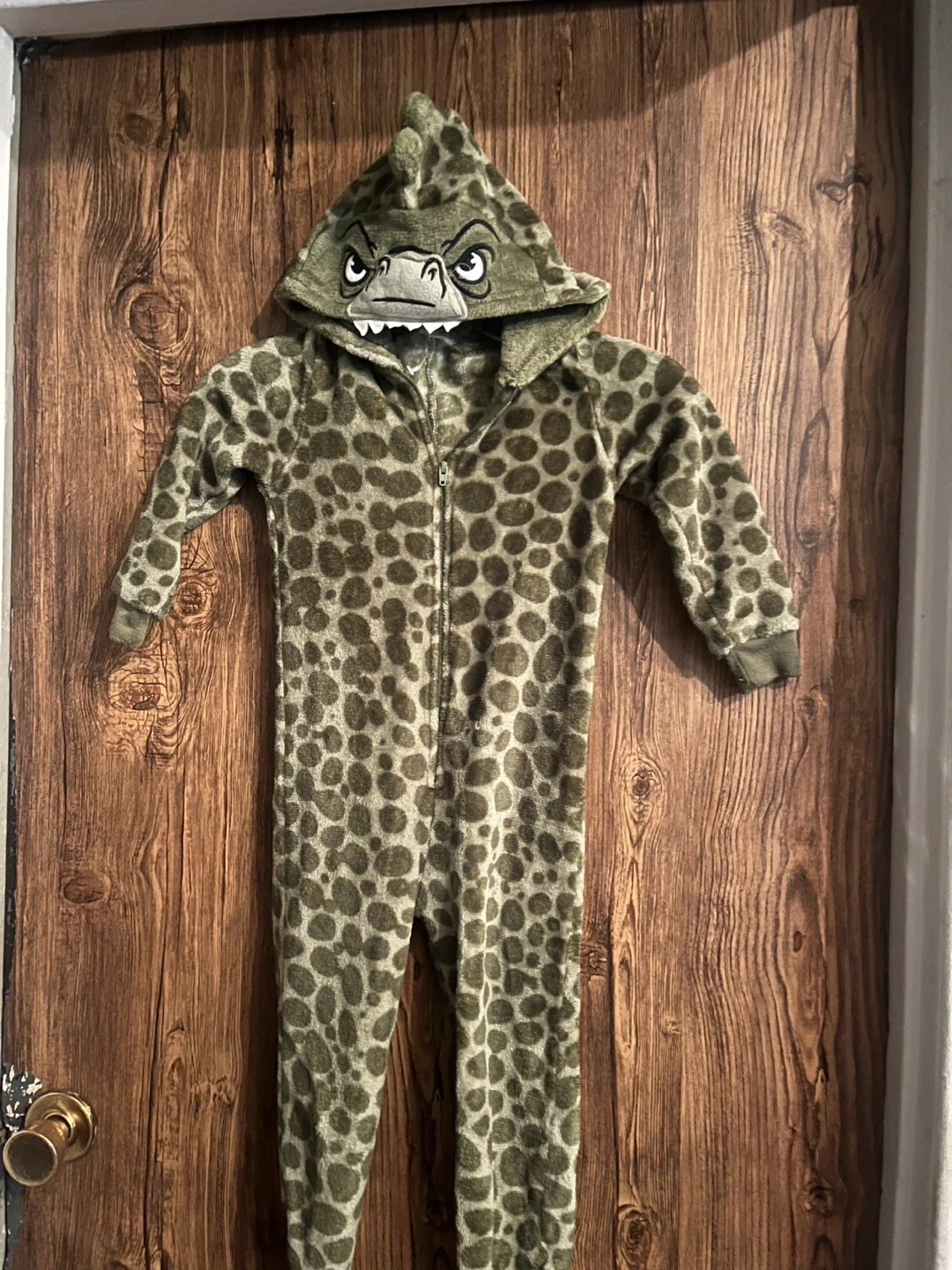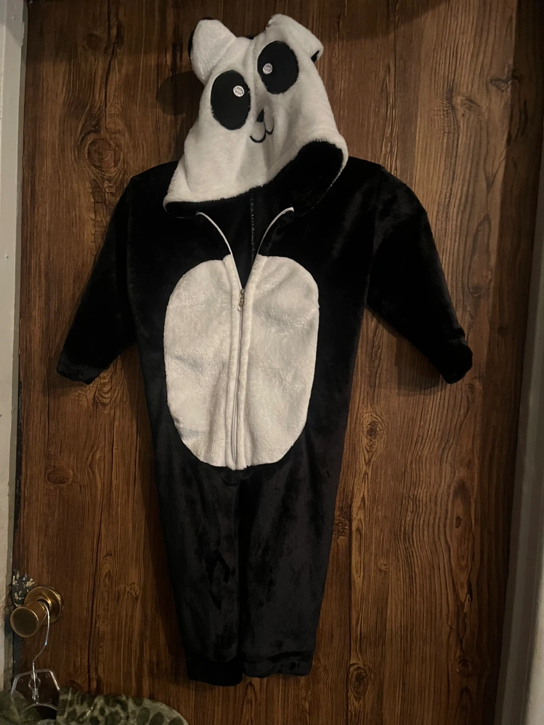 Selling a bundle of kids' costumes. Includes an Elsa dress, a red witch costume, a panda onesie, a Jasmine costume and a dinosaur onesie. Perfect for dress-up or Halloween!