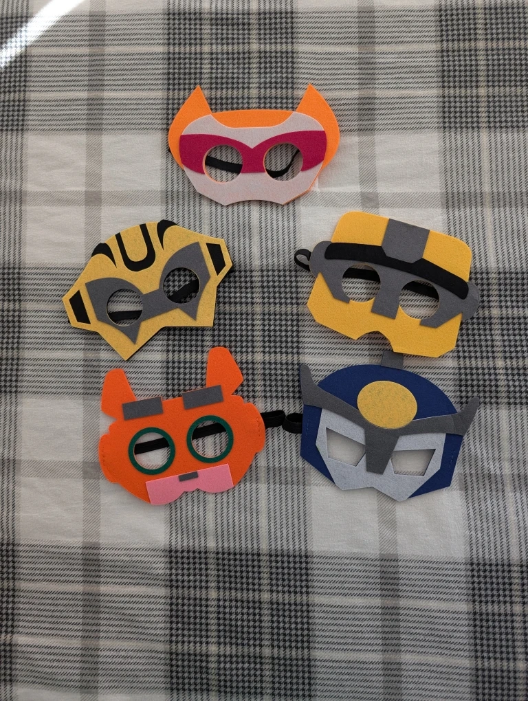 108Selling a set of five fun costume masks for kids! These are made of felt and have elastic straps. Great for dress-up or playtime! great for Halloween $1 each transformer masks