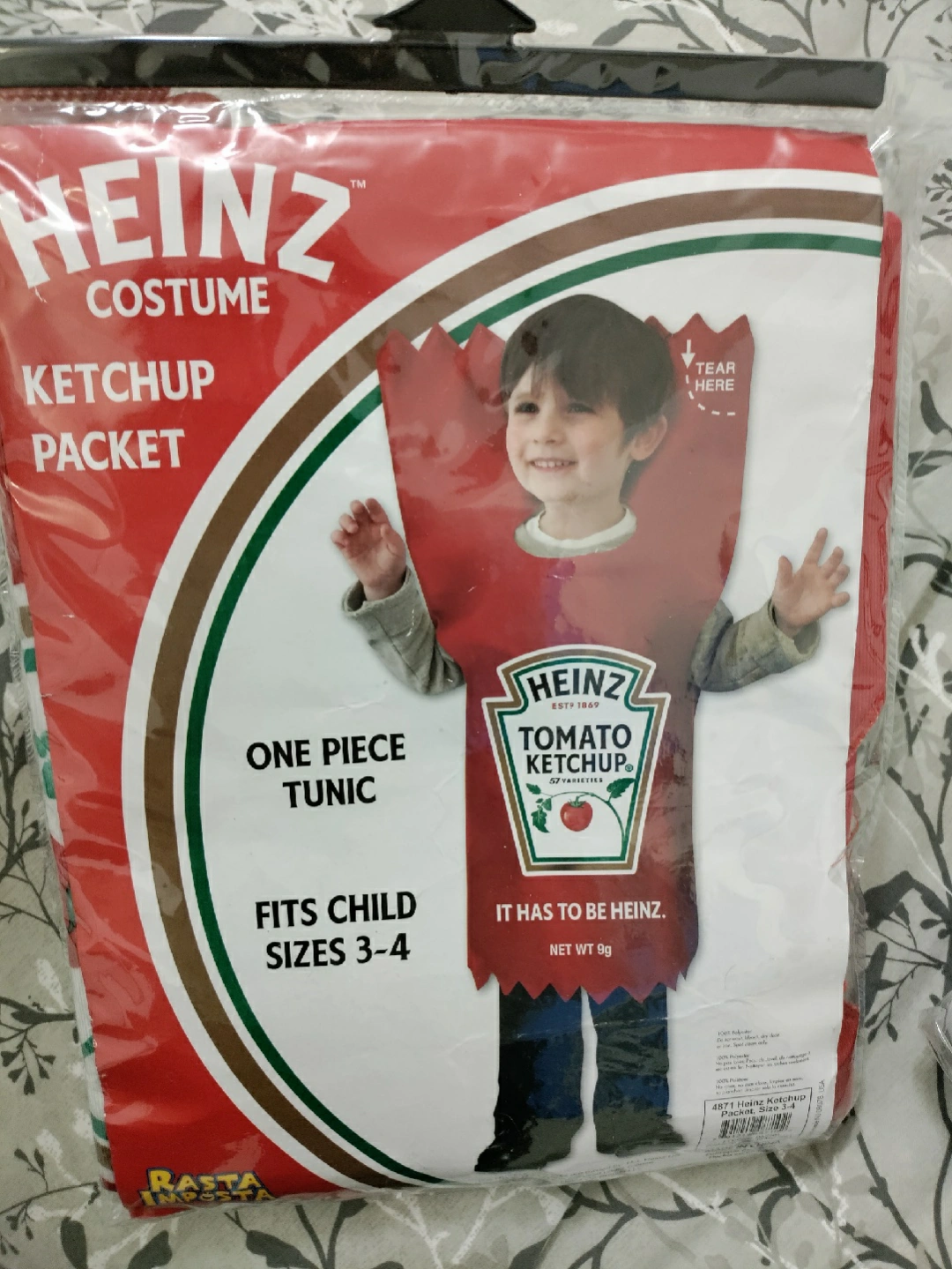 Selling a gently used kids' costumes: SWAT with a helmet (size 3-4) $20 Astronaut costume, with a jumpsuit and helmet (size 3+) $ 35 There is also a dinosaur costume for ages 4-6 $30 Heinz costume for child sizes 3-4 $35