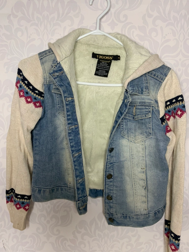 25Kids denim long sleeve hooded fashion jacket. Good condition Size: 10 Cash only Pls check listing if u get more u get good deals
