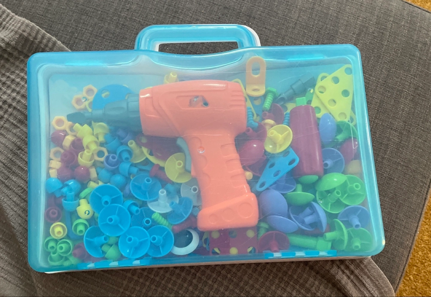 Selling a fun drill toy set for kids! It comes with a variety of colourful pieces and a drill, all neatly packed in a carrying case. Great for creative play and developing fine motor skills