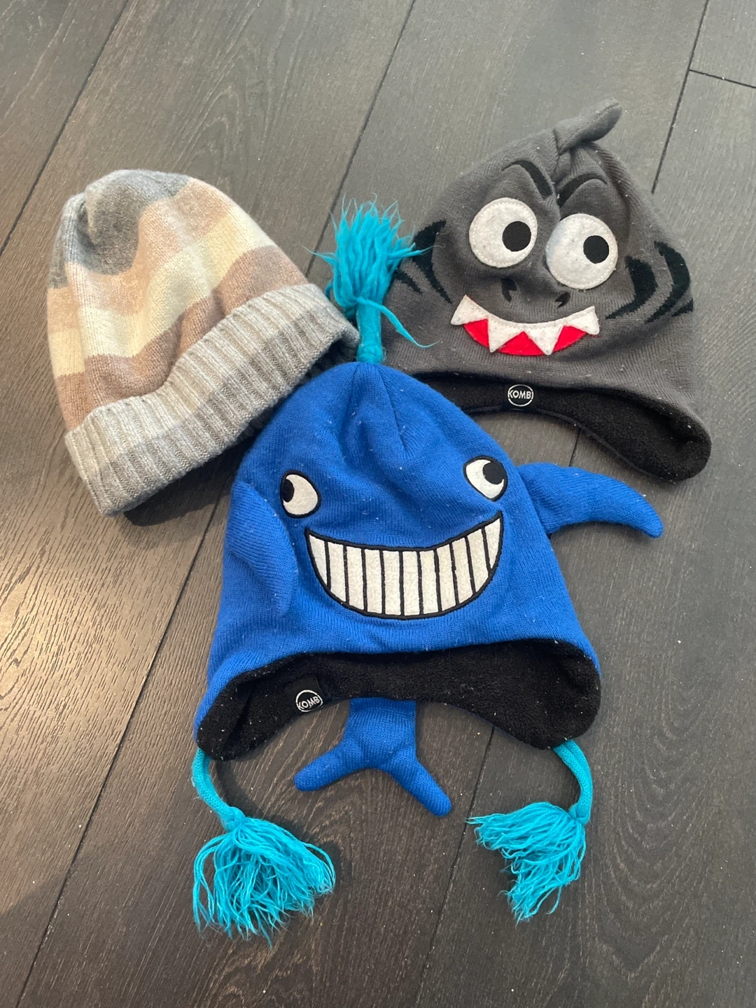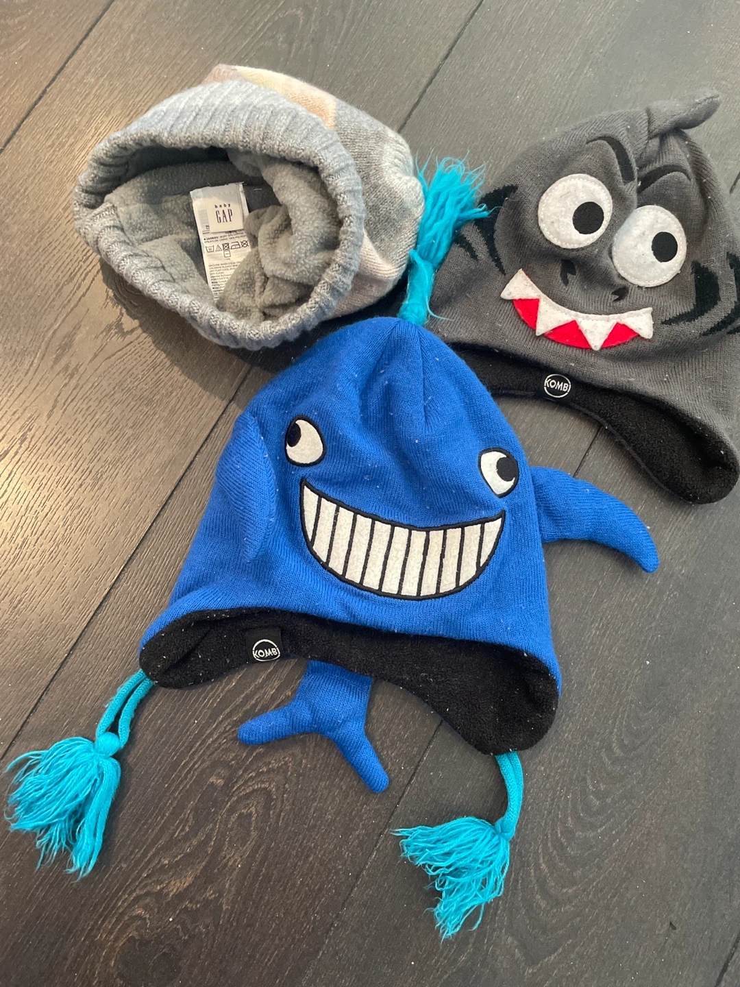 231Selling a set of three kids' hats. There's a striped Gap hat and two fun character hats from Kombi. They're in great condition and ready for a new home! Happy to bundle!