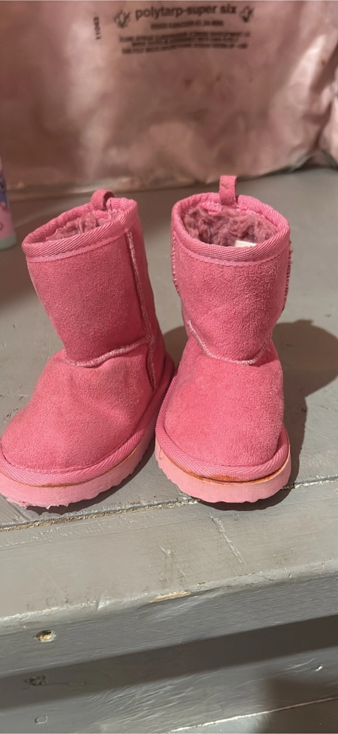 Selling a pair of Ugg Kids Classic Short boots in pink. They are a size 12-18and perfect for keeping little feet warm and cozy!
