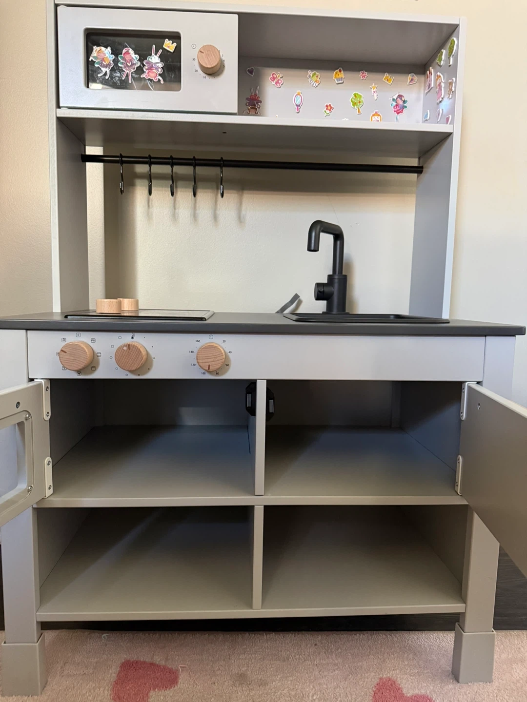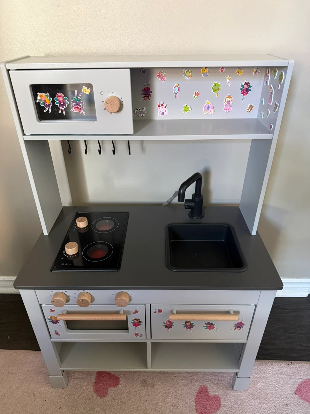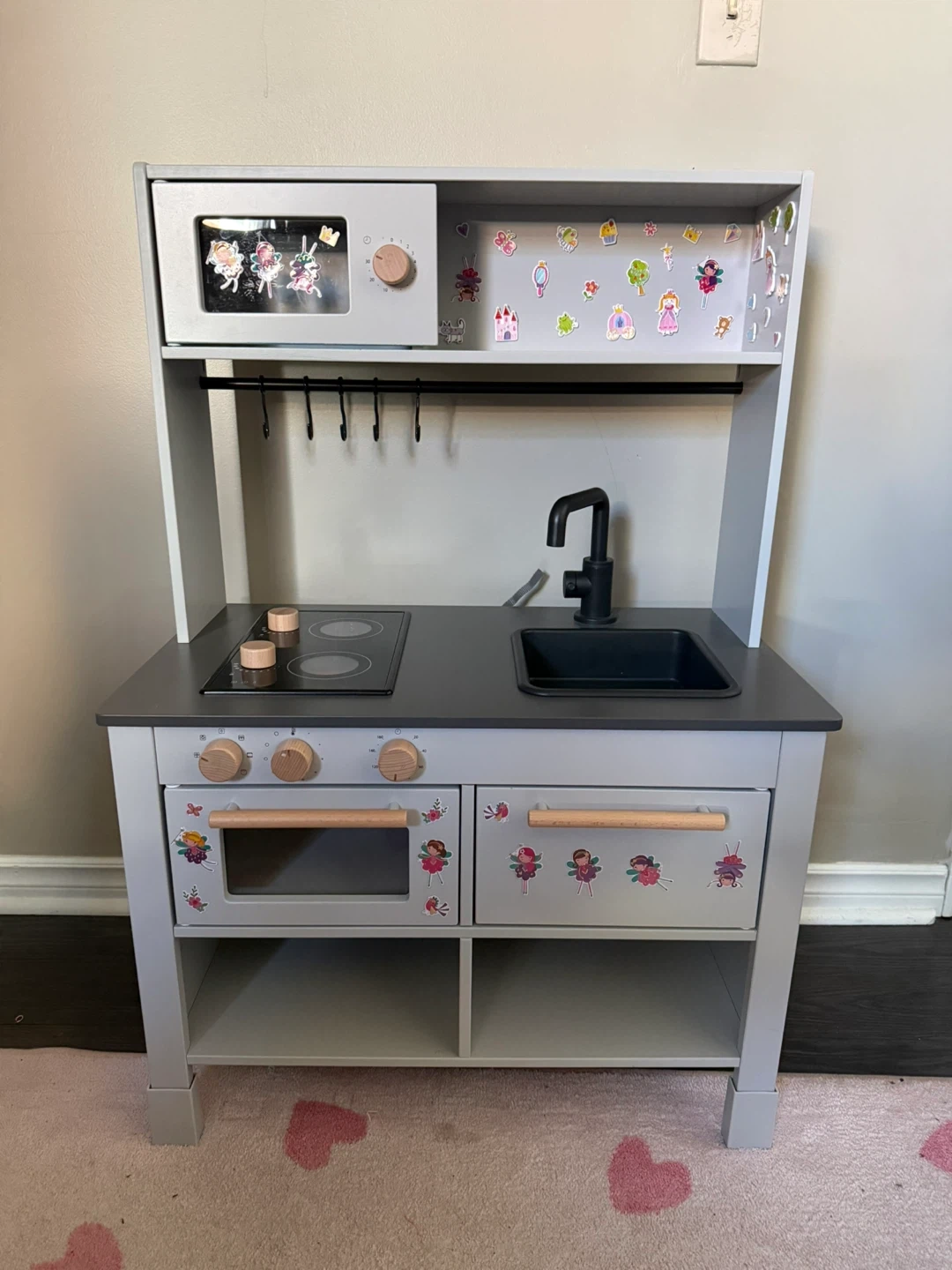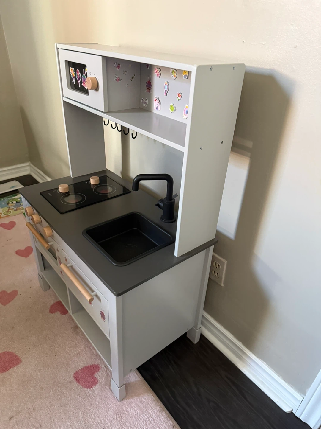 Selling a cute kids play kitchen! It's in great shape and ready for a new home. Features a sink, stove, oven, and microwave. Perfect for little chefs! Condition 8/10. Still in very good condition.