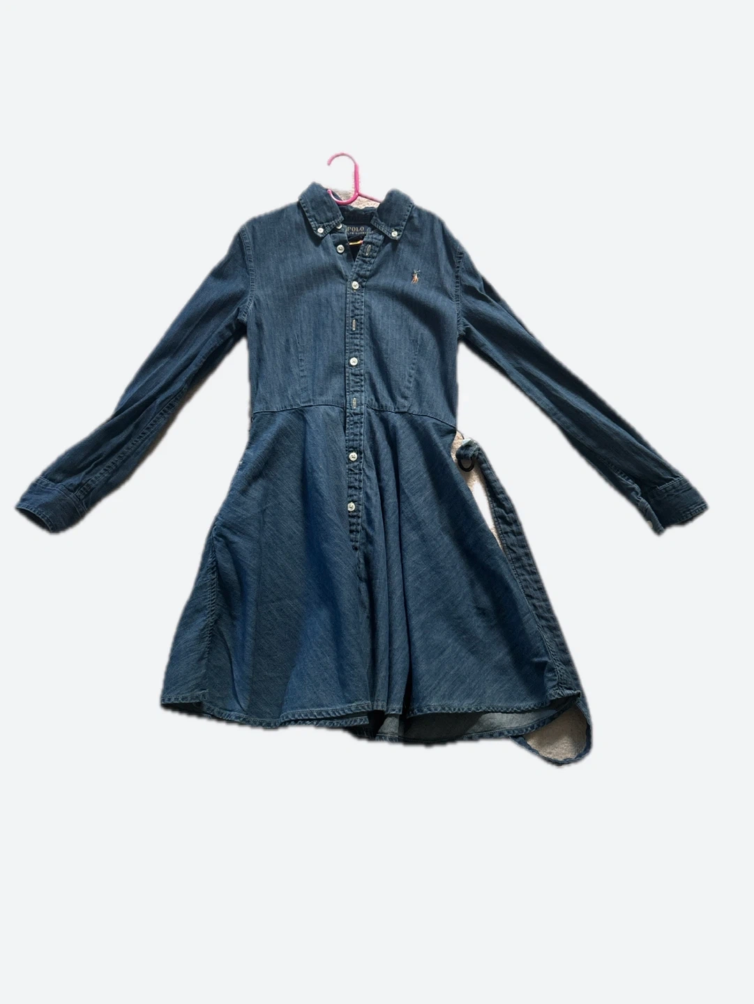 15Here's a cute Polo Ralph Lauren denim dress! It's a button-down style with long sleeves and a tie at the waist. Perfect for a casual day out or dressed up with some accessories